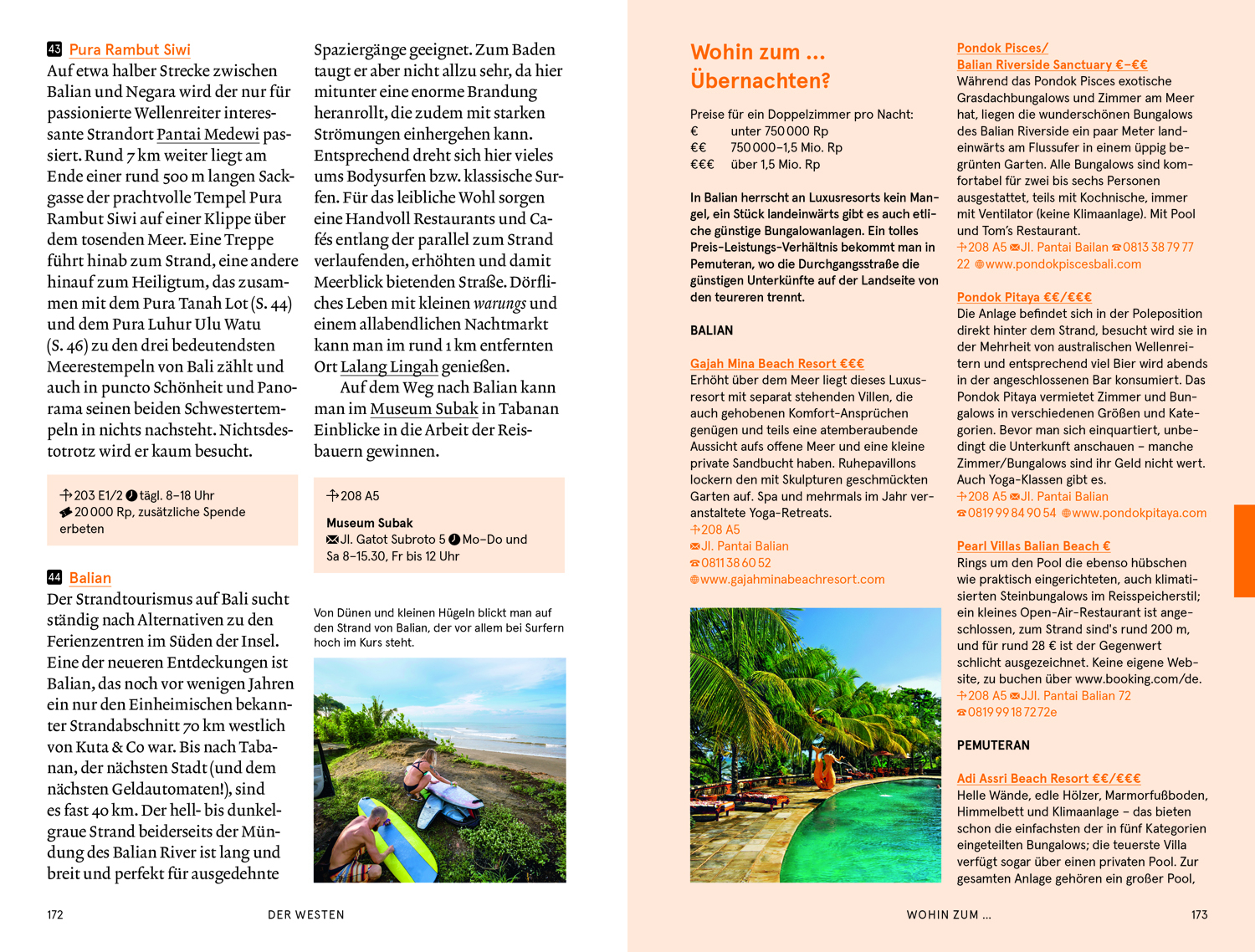 - Tipps für genussvolle »kleine Pausen« in Cafés, Restaurants oder Bars und »magische Momente« auf Bali
