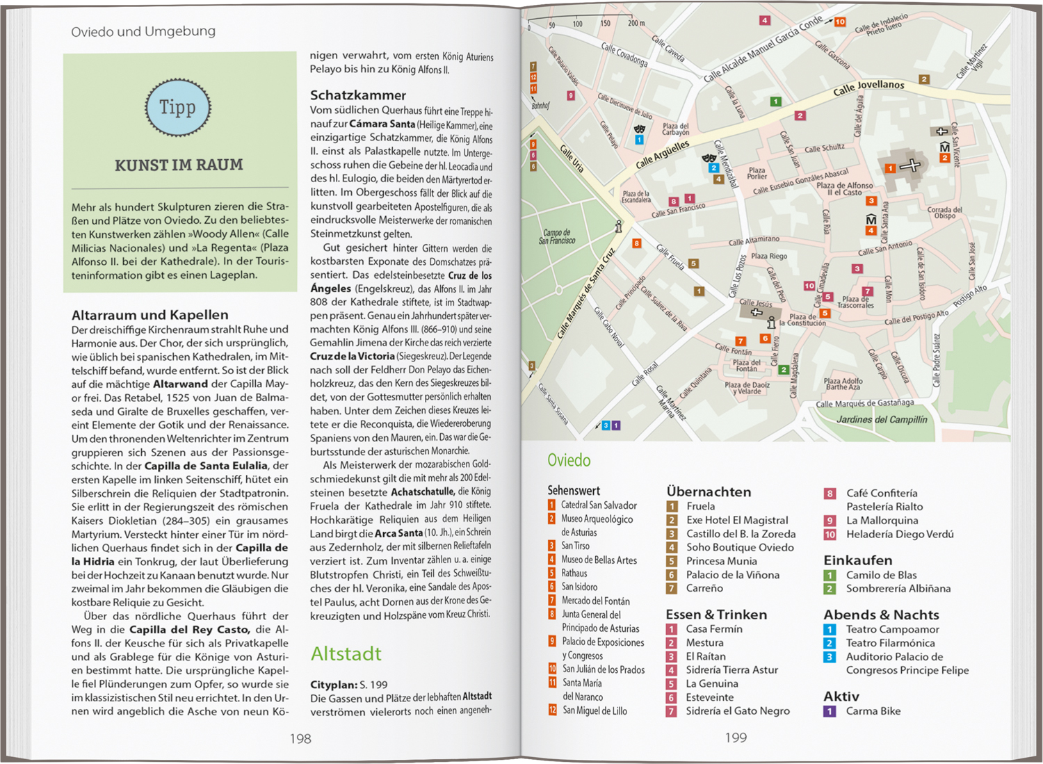 - 34 Karten und Pläne plus eine separate Reisekarte zu Nordspanien und den Jakobsweg im Maßstab 1:800.000.