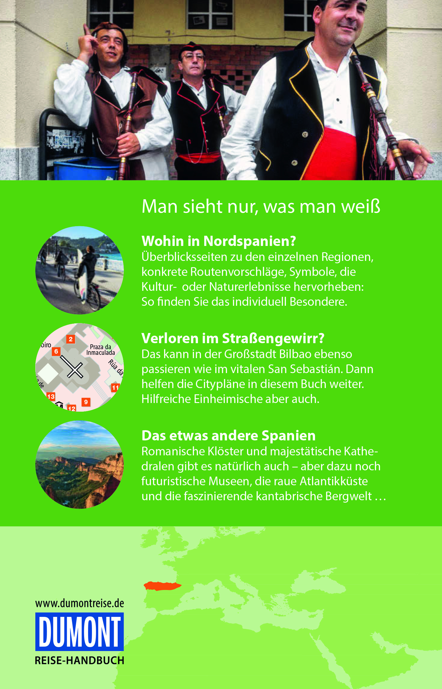 Sattgrüne Landschaften statt volle Strände, feuchtes Atlantikklima statt Mittelmeersonne, Dudelsackklänge statt Flamenco-Rhythmen: Ein Urlaub im Norden der iberischen Halbinsel räumt mit gängigen Spanien-Klischees auf. Im DuMont Reise-Handbuch erfahren Sie, welche Sehenswürdigkeiten und Erlebnisse Sie zwischen San Sebastián im Baskenland und der galicischen Pilgermetropole Santiago de Compostela auf keinen Fall auslassen sollten - für ein Reiseerlebnis, das Ihnen »das andere Spanien« wirklich nahebringt.