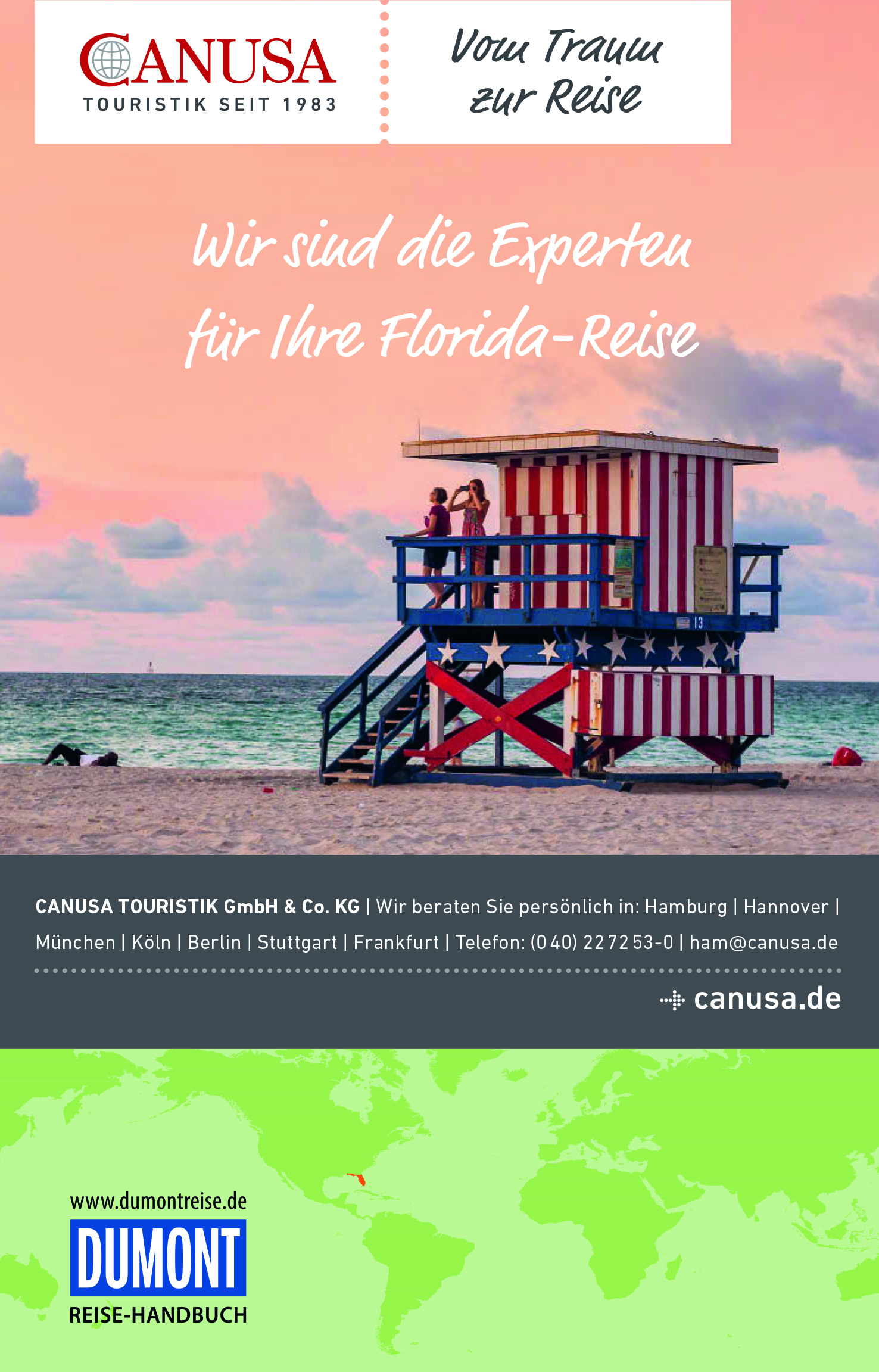 Schatten spendende Palmen an weißen Stränden, Manatees im Mangrovensumpf und Korallenriffe vor karibischen Inseln: Florida beeindruckt Erholungssuchende wie Aktivurlauber mit einer natürlichen Vielfalt, die ihresgleichen sucht. Daneben ziehen Highlights wie der Weltraumbahnhof von Cape Canaveral und der berühmte Vergnügungspark Walt Disney World begeisterte Besucher an. Egal, wie Sie Ihren Urlaub am liebsten verbringen, mit dem DuMont Reise-Handbuch finden Sie Sehenswürdigkeiten und Ausflugsziele ganz nach Ihrem Geschmack!
