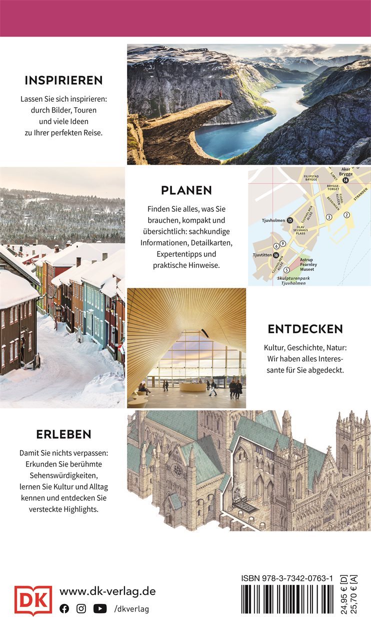 Ausgewählte Top-Themen: Auf den bildgewaltigen Themenseiten des Norwegen-Reiseführers stehen charakteristische Besonderheiten im Fokus. Entdecken Sie Norwegens eindrucksvolle Architektur, wandeln Sie auf den Spuren der Wikinger oder erfahren Sie, wie Si