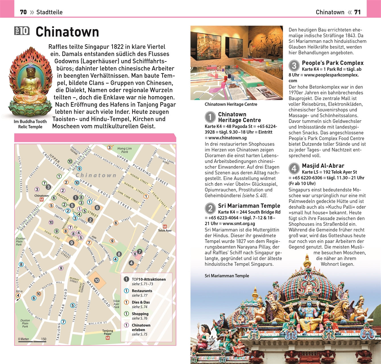 HighlightsWillkommen in SingapurSingapur entdeckenHighlightsNational Museum of SingaporeSingapore RiverThian Hock Keng TempleMasjid SultanSri Veeramakaliamman TempleSingapore Botanic GardensSingapore Zoo, Night Safari & River SafariMarina BayRaffles HotelSentosaThemenHistorische EreignisseMuseenGotteshäuserArchitekturStätten des Zweiten WeltkriegsNationalparks & GärtenWellnessUnbekanntes SingapurKinderKunst & KulturBars & LoungesRestaurantsHawker Center & Food CourtsShoppingmallsKostenlose AttraktionenReligiöse FesteStadtteileChinatownLittle India & Kampong GlamColonial DistrictOrchard RoadAbstecherReise-InfosAnreise & In Singapur unterwegsPraktische HinweiseHotelsTextregisterDanksagung, Bildnachweis & Impressum