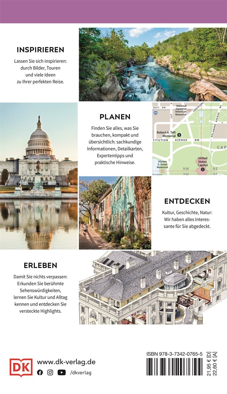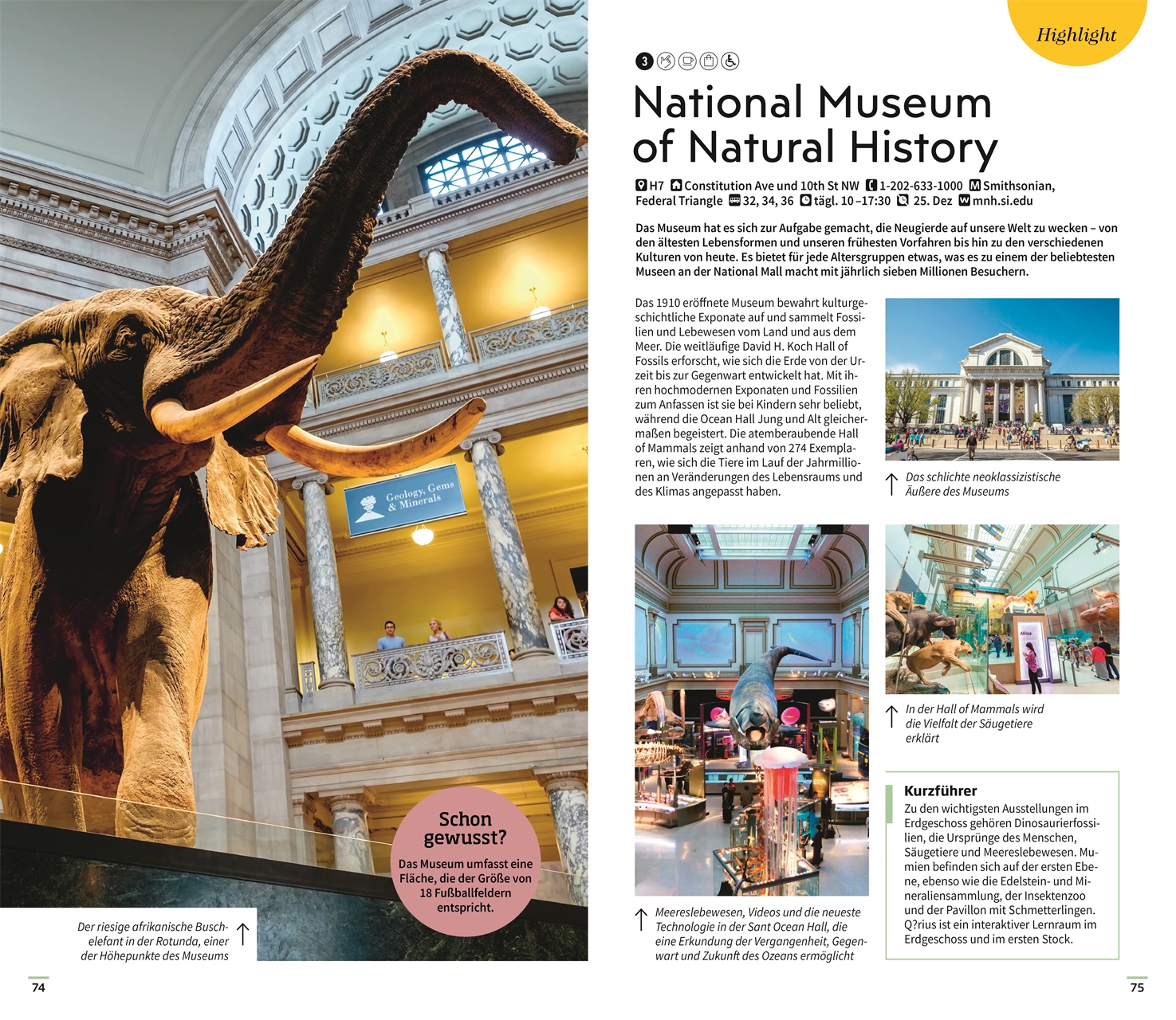 Washington wartet auf Sie: Lassen Sie sich mit dem praktischen und informativen Reiseführer zu den schönsten Erlebnissen, Attraktionen und Sehenswürdigkeiten Washingtons führen. Entdecken Sie die imposanten Regierungsgebäude, die grünen Parks am Ufer des Potomac Rivers und die renommierten Museen und majestätischen Denkmäler entlang der National Mall. Vom historischen Georgetown über das lebendige Penn Quarter bis zum Skyline Drive und Annapolis stellt Ihnen der Reiseführer die faszinierendsten Orte in Washington und dem Umland vor.