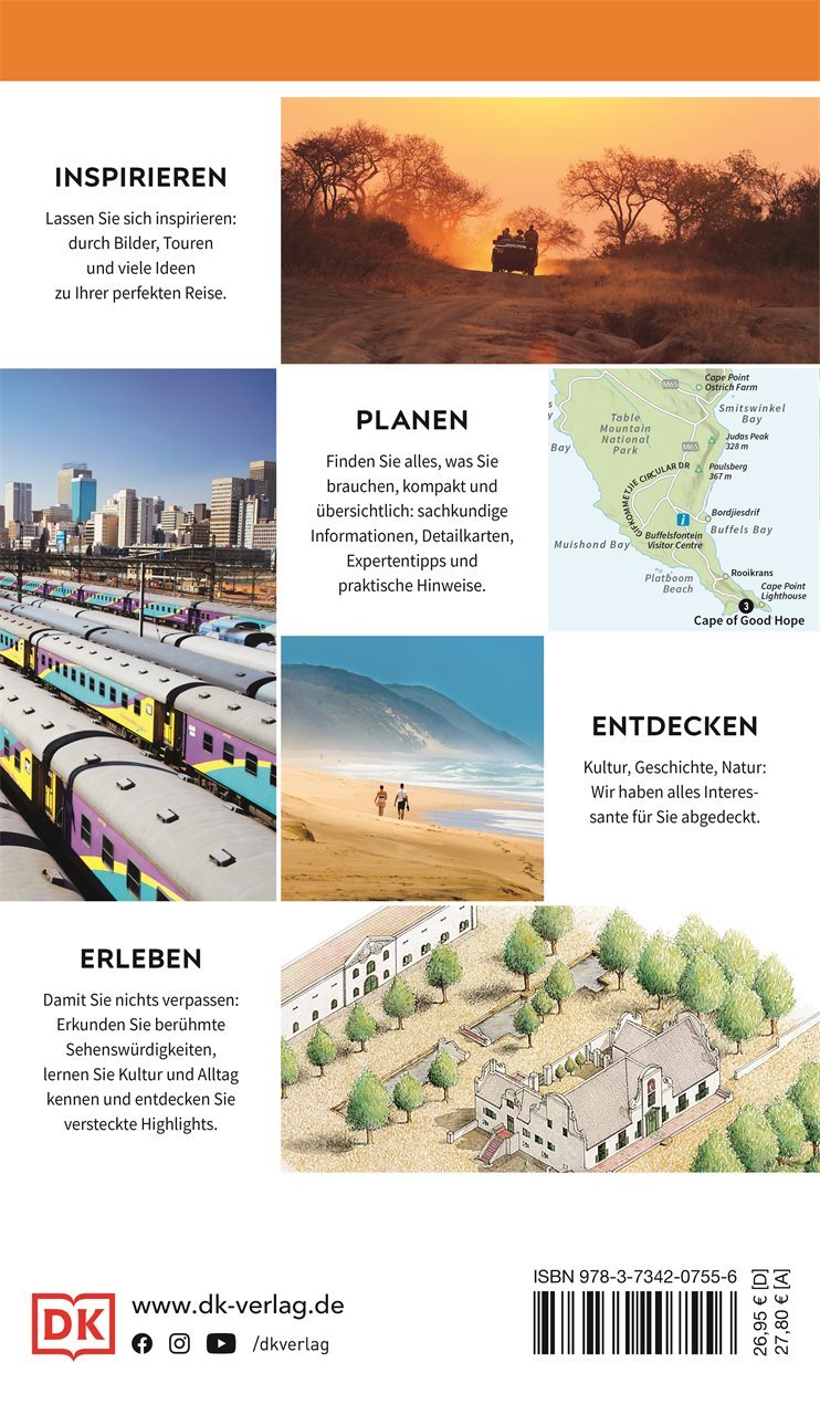 Südafrika wartet auf Sie: Lassen Sie sich mit dem praktischen und informativen Südafrika-Reiseführer zu den schönsten Erlebnissen, Attraktionen und Sehenswürdigkeiten Südafrikas führen ob auf einer Tour durch das Township Soweto die Geschichte der Anti-Apartheid-Bewegung erfahren, weltbeste Weine in den idyllischen Weinbergen von Stellenbosch verkosten oder auf Nelson Mandelas Spuren in Mthatha oder auf Robben Island wandeln.