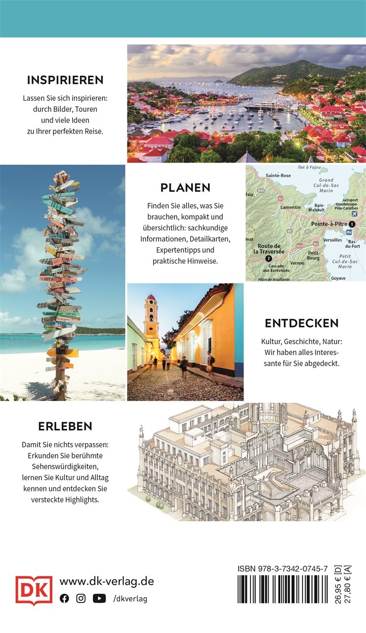 An den Traumstränden der Bahamas den Sonnenuntergang genießen, im kristallklaren Wasser von Curaçao schnorcheln oder die herrliche Architektur von Kubas Hauptstadt Havanna erkunden die Karibik ist einfach magisch. Mit ausführlichem Expertenwissen, den berühmten 3-D-Aufrisszeichnungen und über 550 stimmungsvollen Fotos erleben Sie die Inseln Ihrer Träume hautnah. Dieser Reiseführer Karibik ist der ultimative Begleiter für alle Kulturinteressierten!