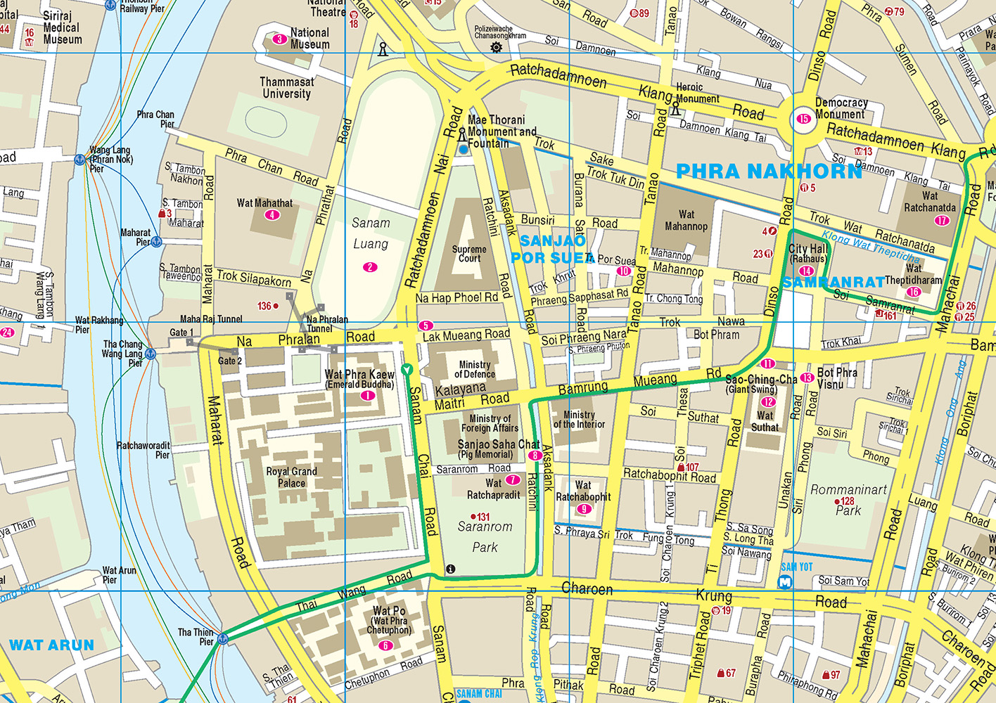 Dazu: kostenlose Web-App für Smartphone, Tablet und PC mit Stadtplan- und Satellitenansichten passend zum Text, Routenführung zu allen beschriebenen Sehenswürdigkeiten, Verlauf des Stadtspaziergangs, seitenbezogenen Updates nach Redaktionsschluss sowie einem Mini-Audiotrainer Thai