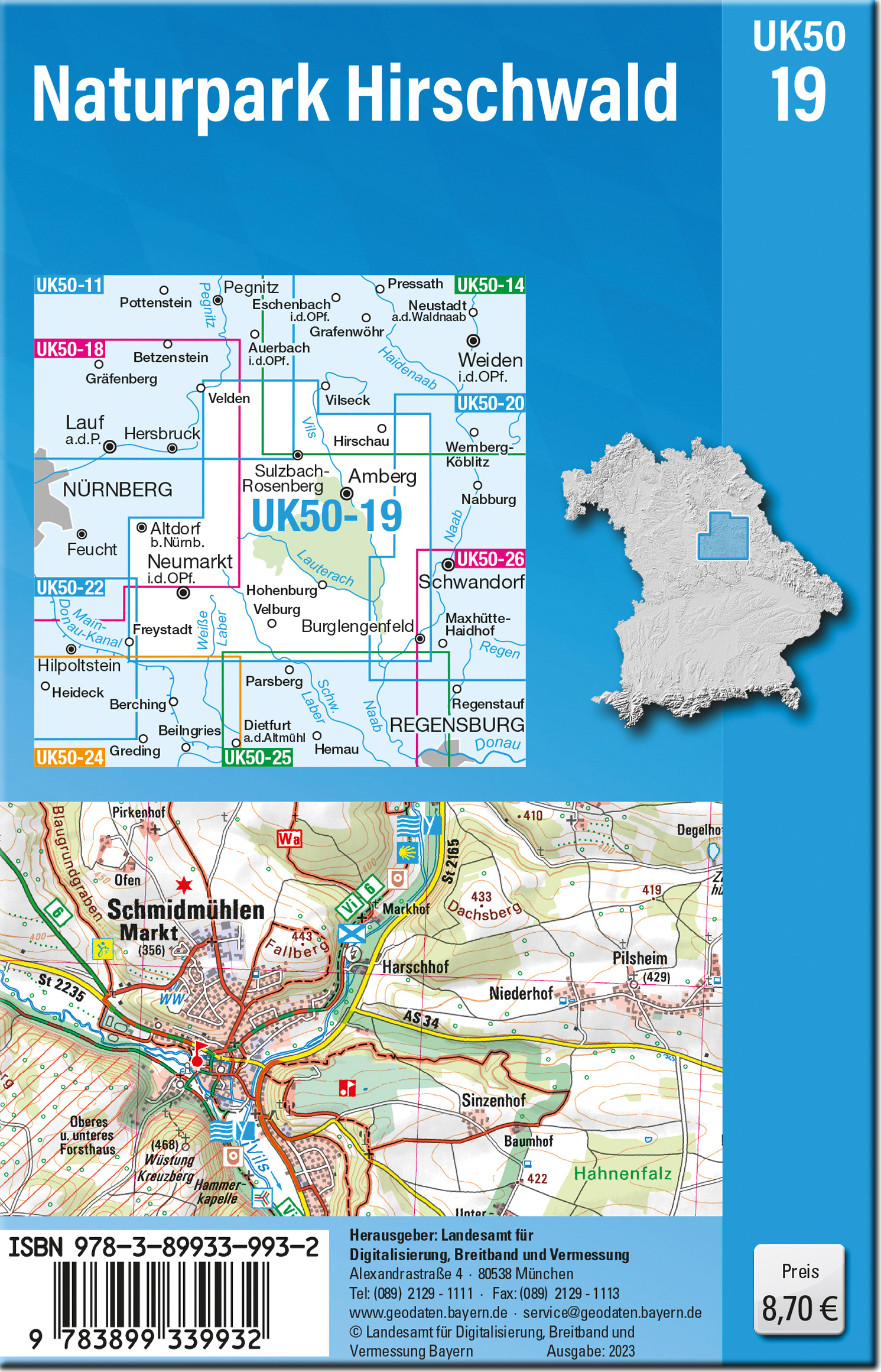 Die amtliche Reihe der UK50 (Umgebungskarte 1:50000) bietet für zusammenhängende bayerische Regionen gezielte Freizeitinformationen.