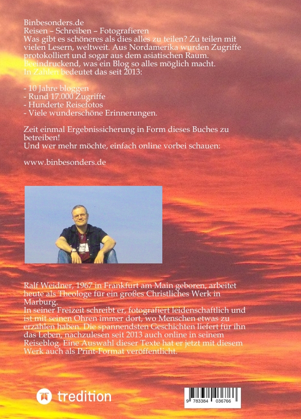 Ralf Weidner geboren 1967, einen Tag bevor der erste Deutsche Bundeskanzler heimgegangen ist. Ob dieser ihn gefährlich fand und flüchtete? Seine Kindheit und Jugend war unauffällig. Geprägt wurde diese Zeit unter anderem von seinem Vater, der Fernfahrer war und mit seinem 40 – Tonner Europaweit Kühlgut, vor allem Speiseeis, auslieferte. In den Ferien fuhr er ein Jahrzehnt mit, gewöhnte sich an ein Leben auf engem Raum und prägt damit die Gene, die in ihm nicht nur angelegt sondern hier auch überzeugend gedüngt wurden. Diese Zeit hat ihn so geprägt, dass er ein Leben ohne unterwegs zu sein sich nicht mehr vorstellen kann. Heute lebt der Theologe und Pastor mit seiner Familie in der Nähe von Marburg und arbeitet für ein christliches Werk. In seiner Freizeit ist er natürlich mit dem Wohnmobil „Ludwig“ unterwegs. Begleiten kann man Ralf Weidner auf seinem Blog, hier schreibt er über die Erlebnisse unterwegs und die Menschen die ihm begegnen. www.binbesonders.de