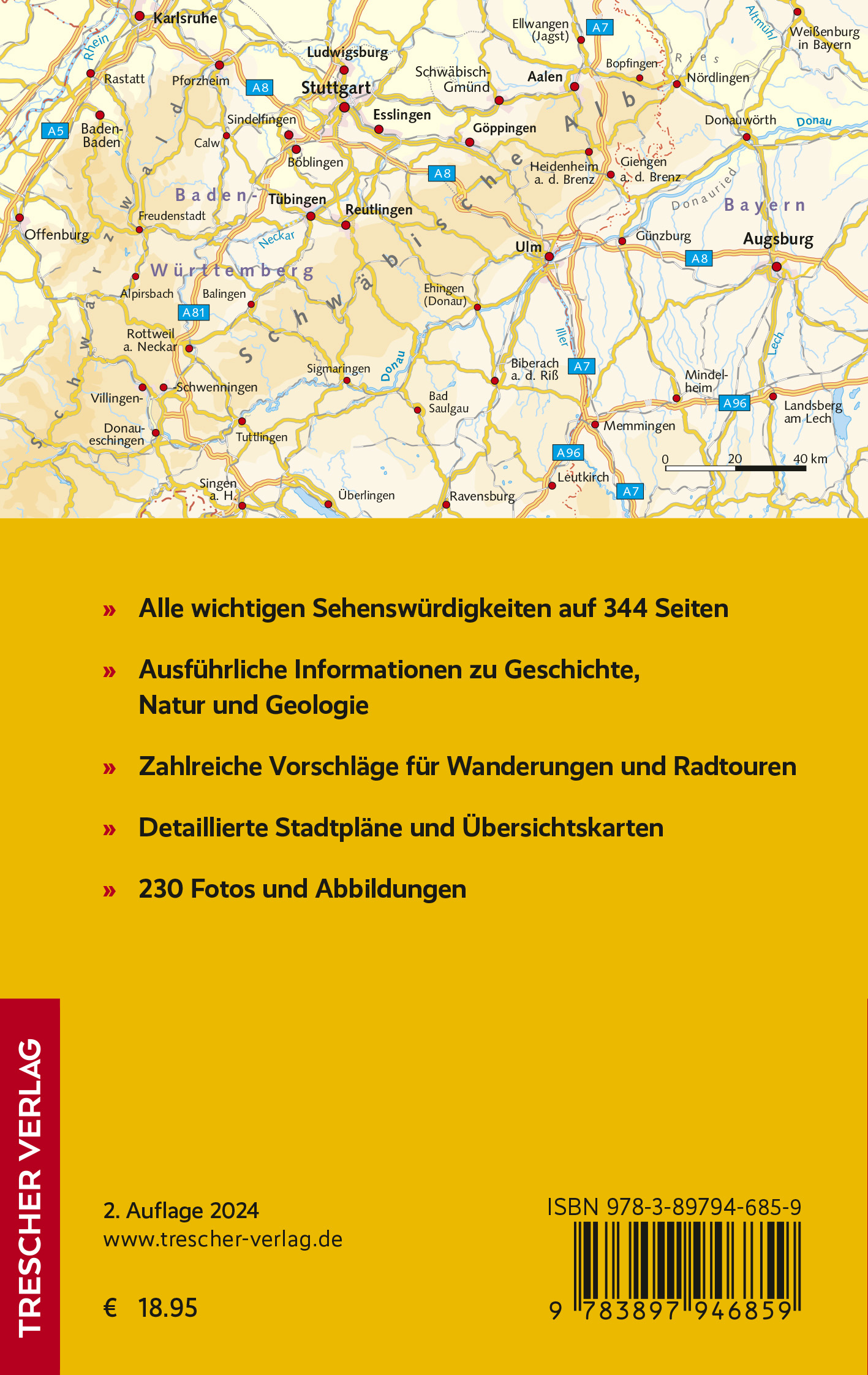 Der Trescher-Reiseführer SCHWÄBISCHE ALB beschreibt ausführlich alle Naturschönheiten auf der Alb, alles Sehens- und Erlebenswerte und hält außerdem jede Menge Tipps zu Unterkunft, Essen und Trinken parat. Extra-Kapitel für Urlaub mit Kindern und zum Aktivtourismus sowie zahlreiche Vorschläge für Wanderungen und Radtouren machen das Buch zum idealen Begleiter für Naturfreunde und Kulturinteressierte ebenso wie für die ganze Familie.