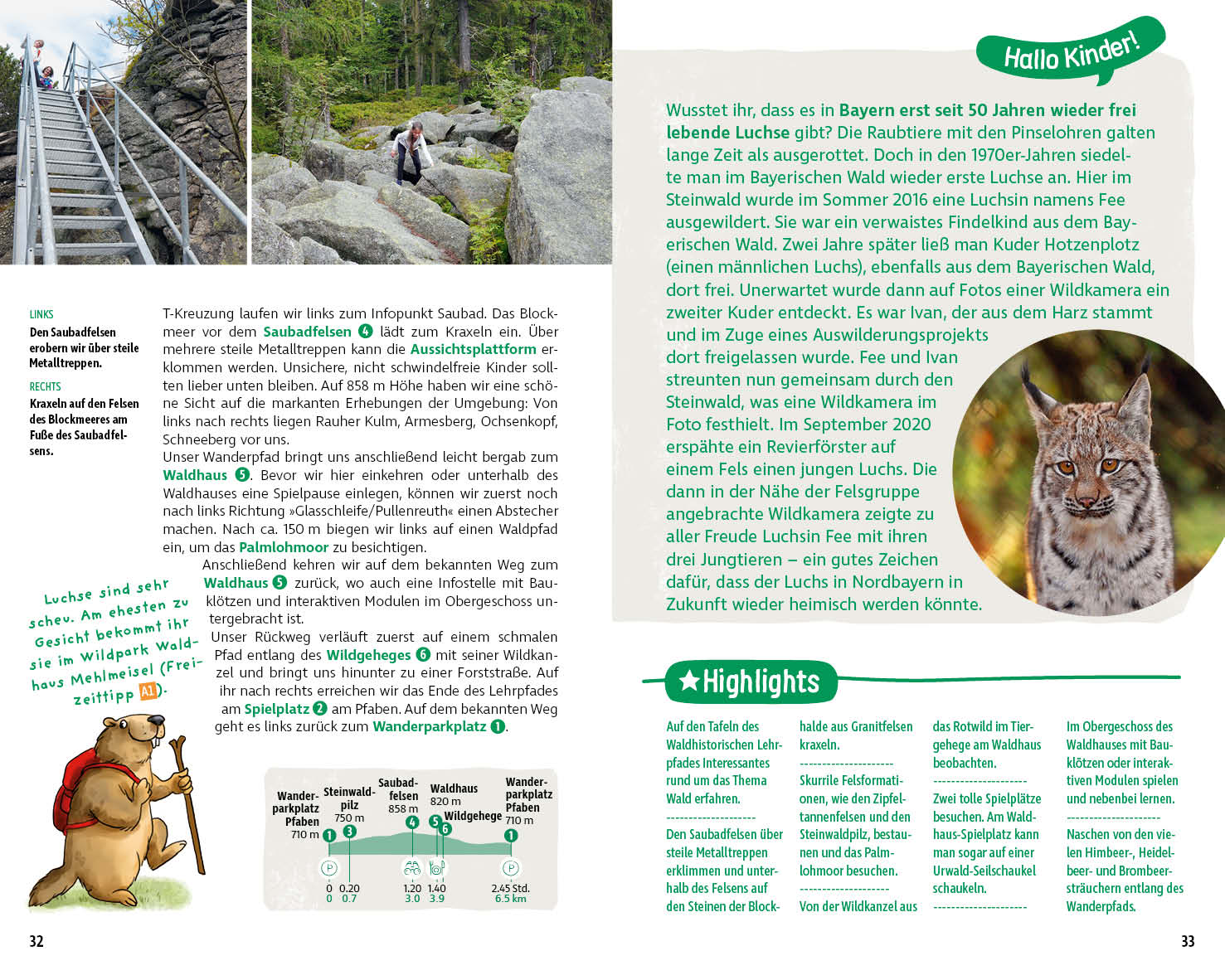 Alle Touren in diesem ErlebnisWanderbuch wurden von Kindern getestet. Für die einfache Planung gibt es zu jeder Wanderung eine Altersempfehlung sowie Angaben zu Schwierigkeit und Dauer. Die zuverlässige Wegbeschreibung wird von einem Kartenausschnitt mit eingezeichneter Route, einem Höhenprofil und Fotos ergänzt. Mit den GPS-Tracks, die zum Download bereitstehen, wird das Navigieren kinderleicht. Und für die Kinder hat das kleine Murmeltier »Rothi« allerlei Wissenswertes rund um die Oberpfalz und mysteriöse Geschichten aus längst vergessenen Zeiten parat.