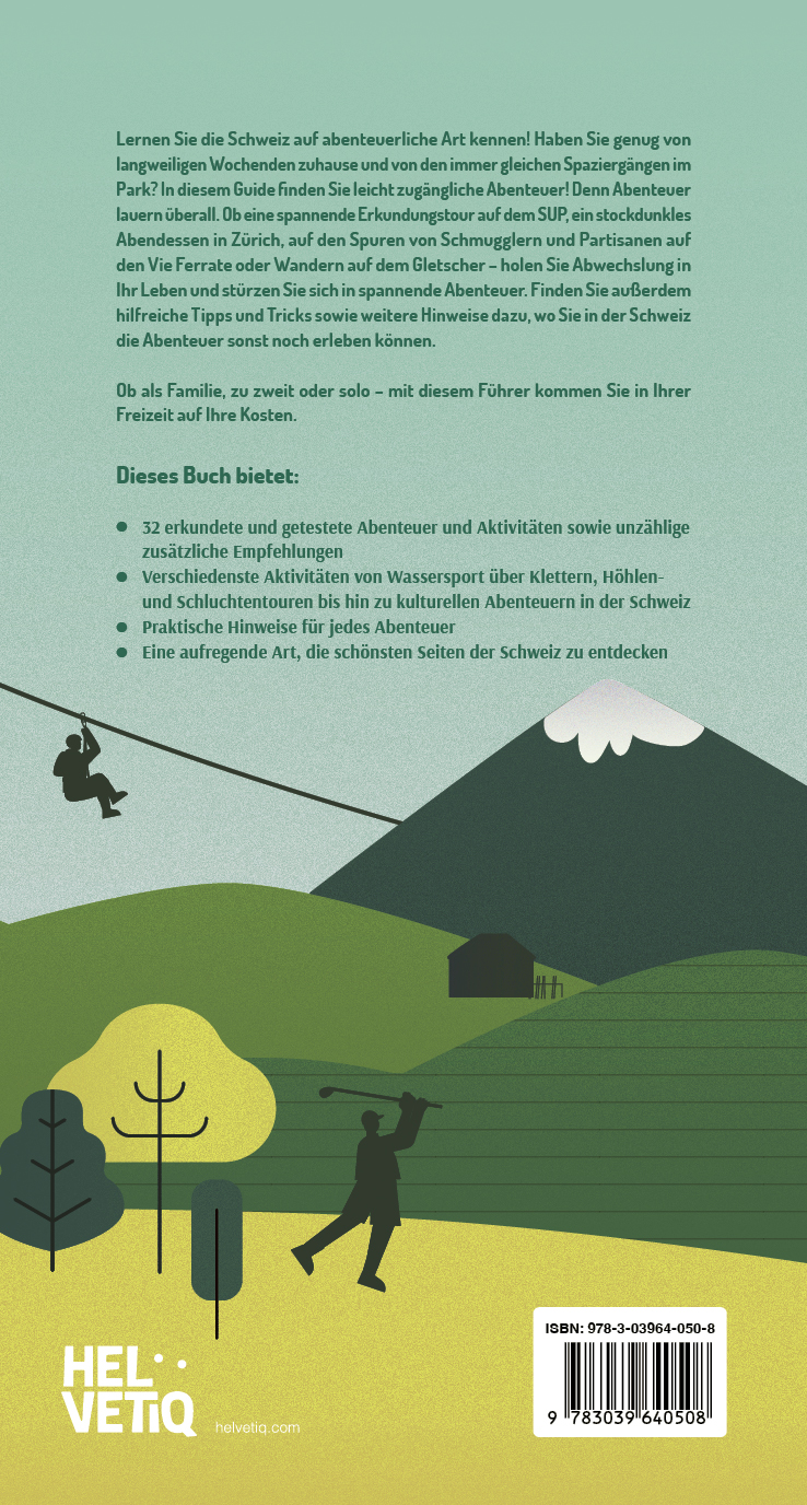 In diesem Guide findet ihr leicht zugängliche und unerwartete Abenteuer! Ob eine spannende Erkundungstour auf dem SUP, der Besuch eines Bunkers auf dem Gotthard, ein stockdunkles Abendessen in Zürich oder auf den Spuren von Schmugglern und Partisanen auf den Vie Ferrate und wandern auf dem Gletscher. Findet außerdem hilfreiche Tipps und Tricks sowie weitere Hinweise dazu, wo in der Schweiz ihr die Abenteuer sonst noch erleben könnt. Ob als Familie, zu zweit oder solo – mit diesem Führer kommt ihr in eurer Freizeit auf eure Kosten.