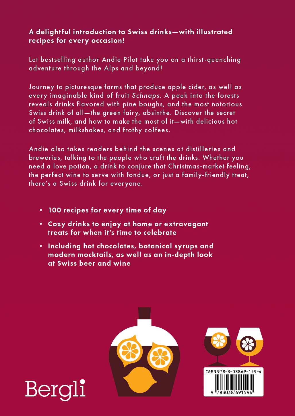 Let bestselling author Andie Pilot takes you on a thirst-quenching journey through the world of Swiss drinks! With almost a hundred recipes for every time of day, there are drinks for enjoying at home or when it's time to celebrate. With many pages of playfully illustrated instructions and beautiful photos of the finished products, this is a book for anyone who knows that drinks can be the highlight of any gathering.Find out the secret of Swiss milk, and how to make the most of it-with delicious hot chocolates, milkshakes, and frothy coffees. Journey through picturesque farms, whose fruit orchards provide apple cider, as well as every imaginable kind of fruit schnapps. A peek in the forests will find drinks flavored with pine boughs, and lead to the most notorious Swiss drink of all-the green fairy, absinthe.Andie will introduce you to Europe's highest brewery and smallest vineyard, as well as the delicate alpine herbs that feature in everything from syrups to spirits to the country's legendary ice teas. No tour of Swiss drinks is complete without learning the secrets of Après-Ski: lots of booze, whipped cream, and a coffee that's set alight.Throughout the journey, Andie will take readers behind the scenes at distilleries and breweries, talking to the people who craft the drinks, with stories about alchemists, Cesar Ritz, and the dogs of Hospice du Grand-Saint-Bernard. Whether you need a love potion, a drink to conjure a Christmas market, the perfect wine to serve with your fondue, or just a family-friendly treat, there's a Swiss drink for everyone.