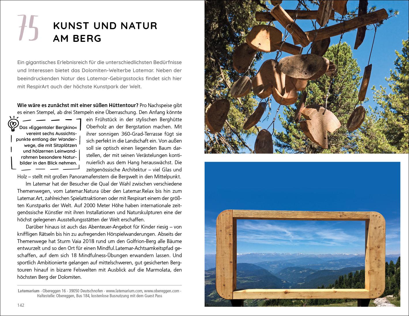 Ein Kirchturm im See, Speck und trutzige Burgen: Für diese Dinge ist Südtirol über die Grenzen der Region hinaus bekannt. Wer aber denkt, dass es nicht mehr zu bieten hat, wird bei diesem Buch staunen. Abseits bekannter Wege warten kleine und große Highlights und Geheimnisse, die Touristen und Einheimischen einen neuen Blick auf die Region ermöglichen. Rollen Sie selbst Knödel, schnuppern den betörenden Duft des Latschenkieferöls oder schweben Sie mit dem Heißluftballon über Dolomitengipfel.