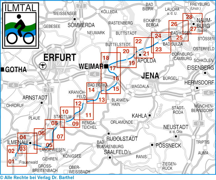 | Schlagworte | Bad Sulza • Belvedere • Buchenwald • Frauenwald • Ilmenau • Ilm; Karten • Ilm, Karte; Radkarte • Ilm, Karte; Wanderkarte • Ilm; Radkarten • Ilm; Wanderkarten • J.W. von Goethe • Karten, Globen / Karten, Stadtpläne, Atlanten/Deutschland • Kranichfeld • Kromsdorf • KTN/Karten, Stadtpläne, Atlanten/Deutschland • Naumburg • Park an der Ilm • Radwandern • Saaleradweg • Stadtilm • Weimar • Weindorf Kaatzschen |