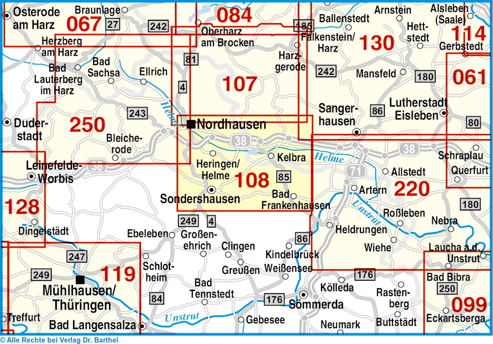 | Schlagworte | Bad Frankenhausen • Goldene Aue • Kelbra • KTN/Karten, Stadtpläne, Atlanten/Deutschland • Kyffhäuser • Kyffhäuser; Karten • Kyffhäuser, Karte; Radkarte • Kyffhäuser, Karte; Wanderkarte • Kyffhäuser; Radkarten • Kyffhäuser; Wanderkarten • Landkarten • Nordhausen • Sondershausen • Sondershausen (Umgebung); Karten • Sondershausen (Umgebung), Karte; Radkarte • Sondershausen (Umgebung), Karte; Wanderkarte • Sondershausen (Umgebung); Radkarten • Sondershausen (Umgebung); Wanderkarten |