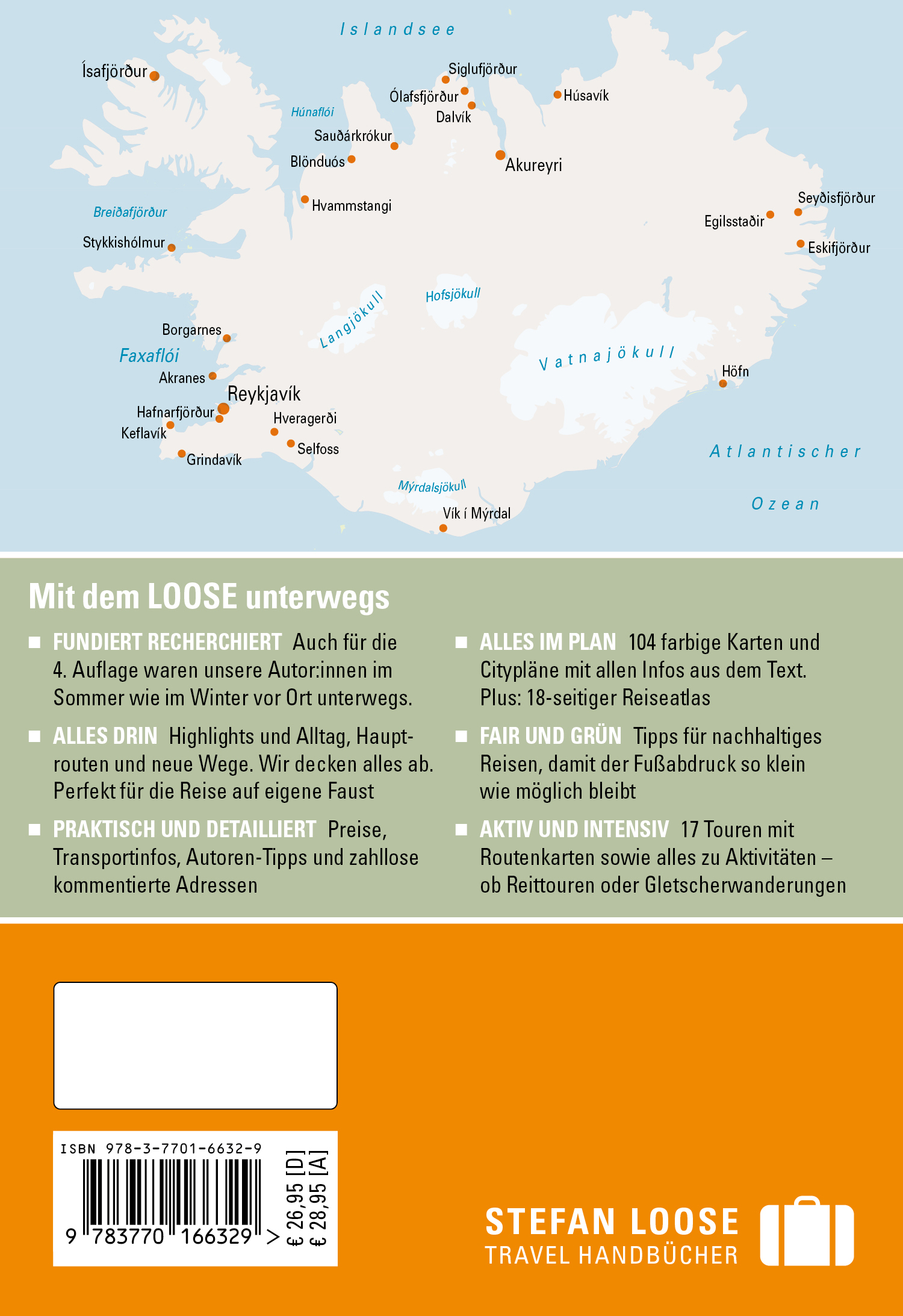 Mit dem Loose nach Island, das bedeutet: die Insel aus Feuer und Eis individuell entdecken. Auch dieser Loose hat sich schnell einen guten Namen gemacht und erscheint nun in der 4. Auflage. Das Buch beantwortet zentrale Fragen zum Thema Islandreise auf eigene Faust: Wie ist man am besten im Land unterwegs? Auf dem Pferderücken, mit dem Camper-Van, dem Auto, einem 4x4? Zu Fuß, per Anhalter oder mit dem Bus? Wo schlafen, was und wo essen? Welche Sehenswürdigkeiten lohnen sich, und was gibt es zu beachten? Und nicht zuletzt: Welche Aktivitäten werden angeboten? Denn auf Island ist vieles möglich: Eisklettern, Wandern, Tauchen. Man muss nur wissen, wo und wann und wie. Da alle Tipps und Orte im Buch auch auf den zahlreichen Karten verzeichnet sind, findet sich der Leser schnell zurecht. Und auch wer Lust hat auf detailliertes, gut lesbares Hintergrundwissen zu Land und Leuten, wird im Stefan Loose Travel Handbuch Island fündig. QR-Codes im Buch führen zu weitere Infos und Updates auf www.stefan-loose.de.