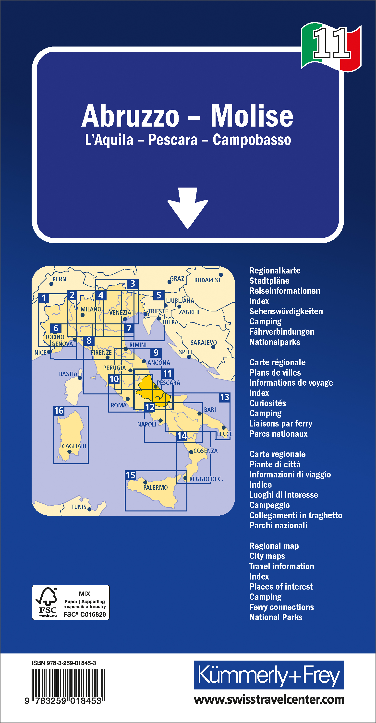 Kümmerly+Frey Regional-Strassenkarte 11 Abruzzen, Molise 1:200.000