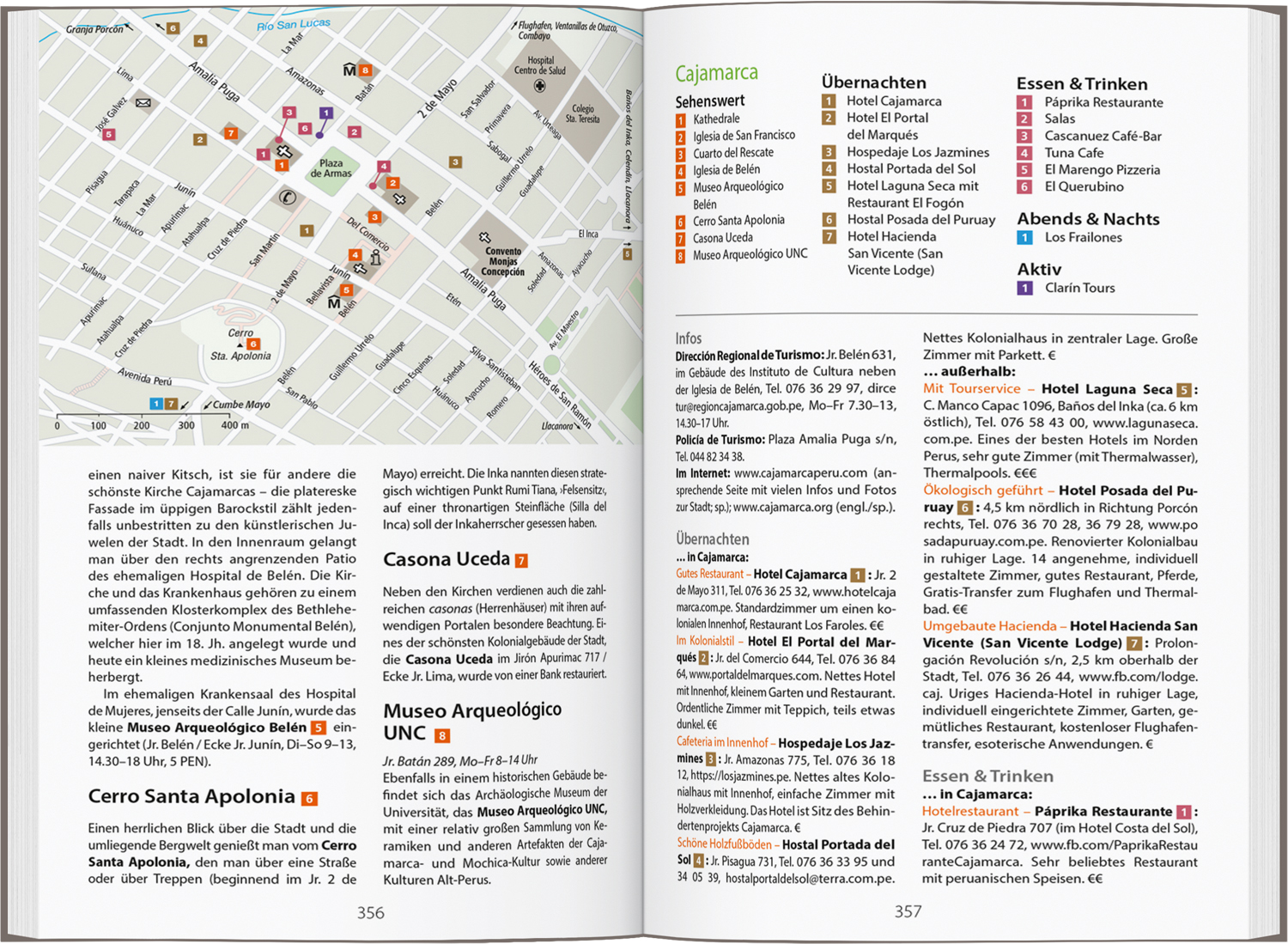 - 41 Karten und Pläne plus eine separate Peru-Reisekarte im Maßstab 1:1.600.000.