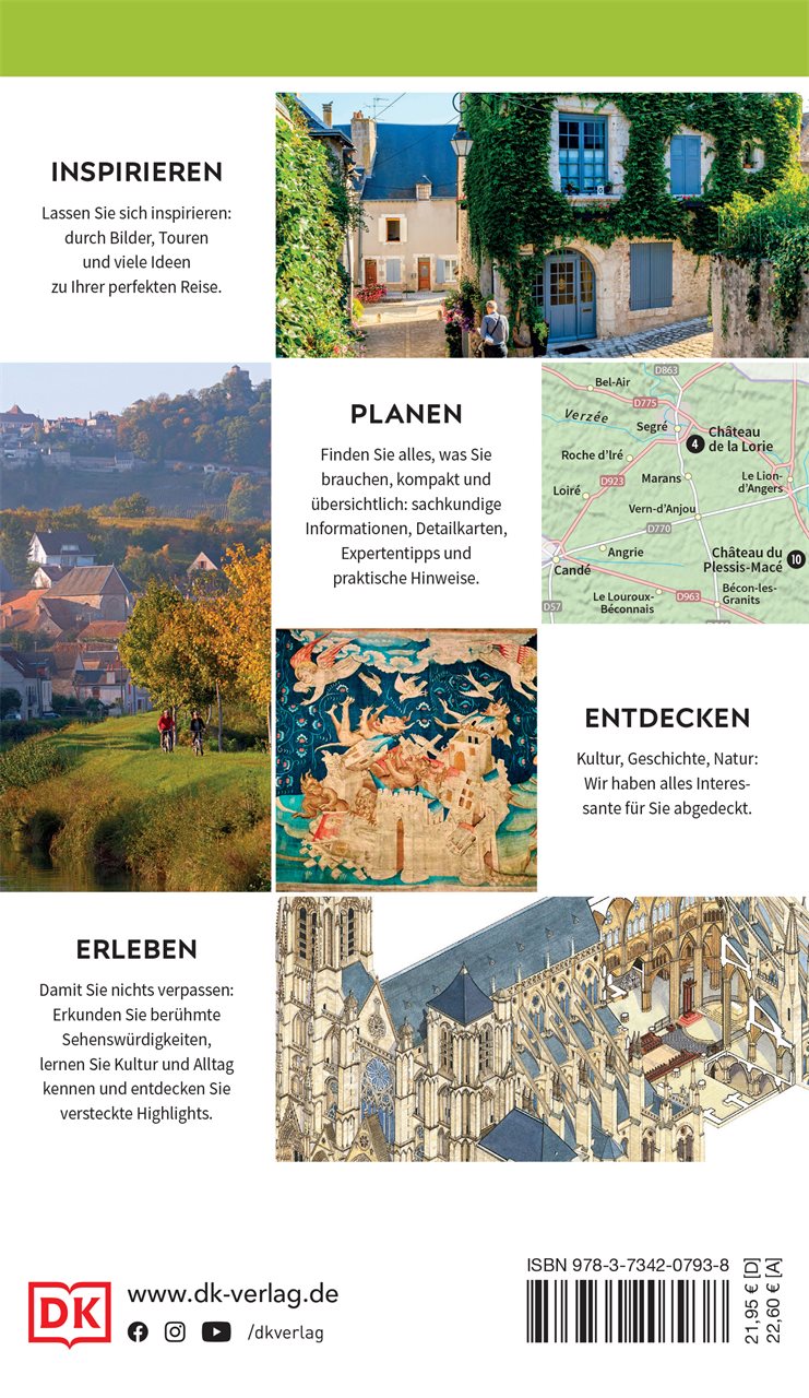 - Ausgewählte Top-Themen: Auf den bildgewaltigen Themenseiten des Reiseführers stehen charakteristische Besonderheiten im Fokus. Erleben Sie die reiche Weintradition, die zauberhaften Gärten, die kulinarischen Genüsse und die vielfältigen Outdoor-Aktivitäten im Loire-Tal.