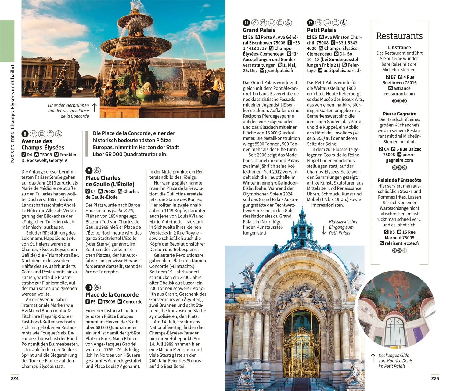 - Ausgewählte Top-Themen: Auf den bildgewaltigen Themenseiten des Paris-Reiseführers stehen charakteristische Besonderheiten im Fokus. Entdecken Sie die großartige Küche Frankreichs mit der Haut Cuisine oder rustikalen regionalen Gerichten, weltberühmte Kunst, grüne Parks und Gärten oder begeben Sie sich auf die Spuren großer Namen, denn die Stadt hat schon zahlreiche Künstler und kluge Köpfe inspiriert.