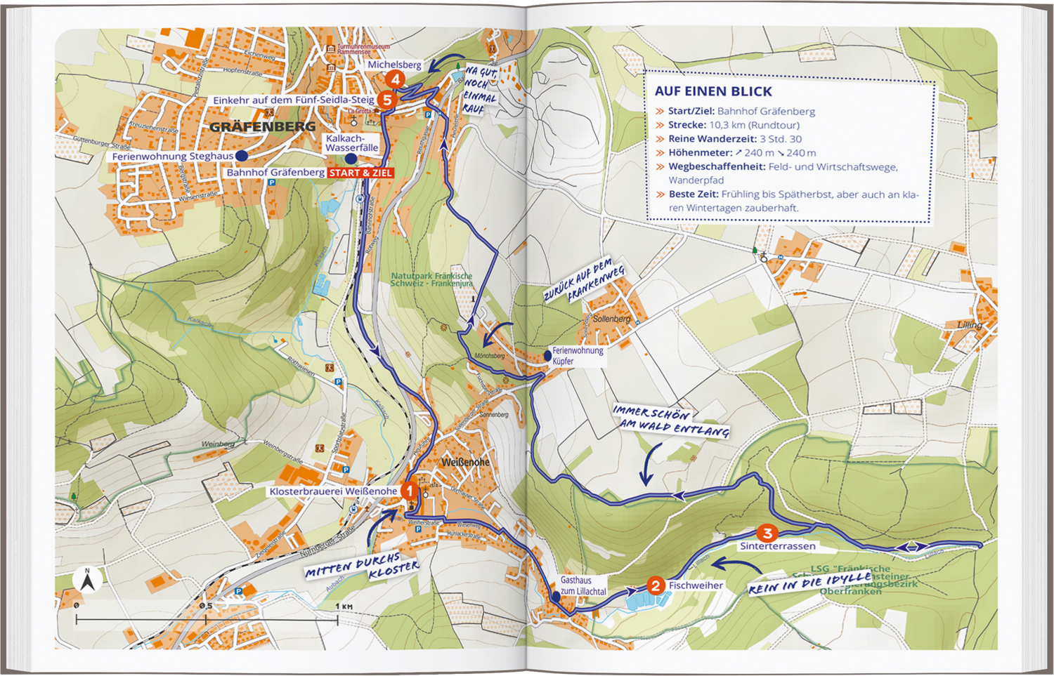 Tipp: Für alle Touren gibt es GPS-Daten im GPX-Format als Download zum Wanderführer Fränkische Schweiz. So können die Wanderungen direkt auf dem Smartphone oder GPS-Gerät zum Navigieren verwendet werden.