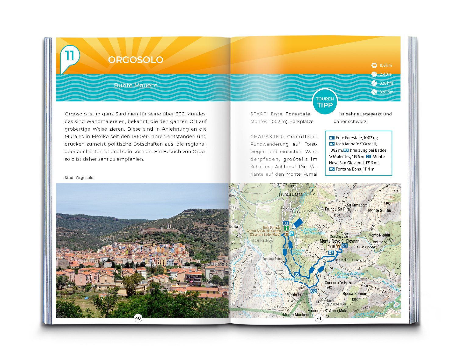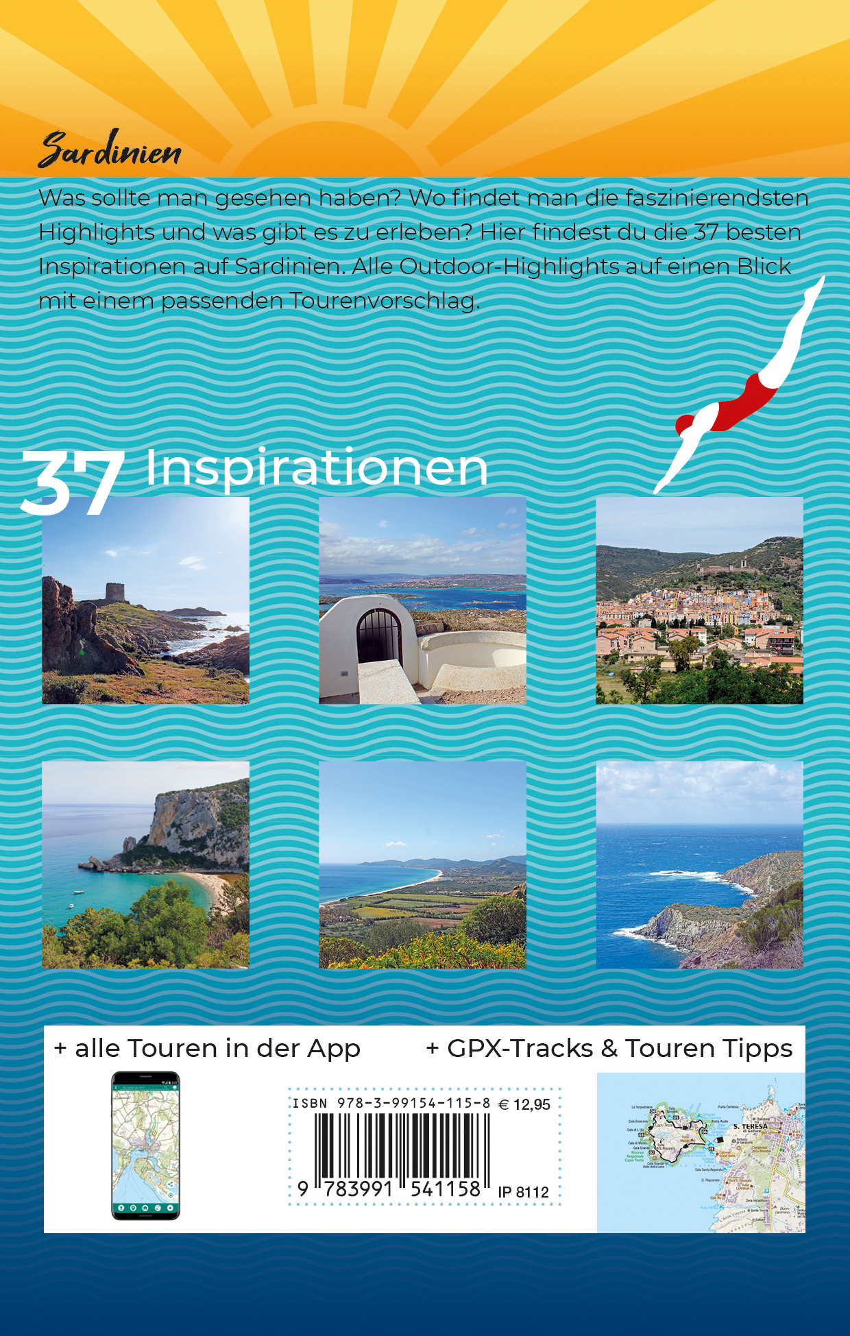 Besser vorher schon wissen, was es zu sehen gibt: Alle 37 Natur- und Wanderhighlights findest du im kompakten Reiseführer Inspiration Sardinien. Wasserfälle, einsame Buchten, atemberaubende Aussichten oder einmalige Bergdörfer. Wer will solche Geheim-Tipps nicht schon vor der Reise erfahren? Perfekt für die Urlaubsplanung. So bekommt man schnell einen Überblick, wie man das Beste aus dem Urlaub oder Kurzurlaub macht. Dabei liegt der Fokus voll auf der Natur und einem Aktiv-Urlaub. Vorgestellt werden alle Ziele mit der dazu passenden Wandertour. Eingezeichnet in einer Karte, kompakt beschrieben und mit einem Foto ausgestattet bekommst du schnell einen schönen Eindruck was dich erwartet.