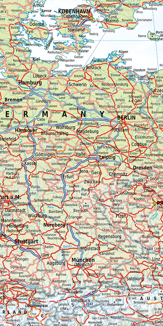 Dank den deutlich gekennzeichneten, aktuellen und leicht lesbaren Zugstrecken, dem aufgeräumten Kartenbild sowie der übersichtlichen Geländedarstellung, ist die Karte das perfekte Hilfsmittel, um sich ein Bild des europaweiten Schienennetzes zu machen. Nebst den vermerkten Hochgeschwindigkeitsstrecken sind Schmalspuren, Breitspuren, Neubaustrecken, Güterverkehrstrecken sowie Tunnels, Eisenbahnfähren, etc. ebenfalls auf der Karte vermerkt und können bei der Planung Ihrer nächsten Zugreise von Nützen sein.