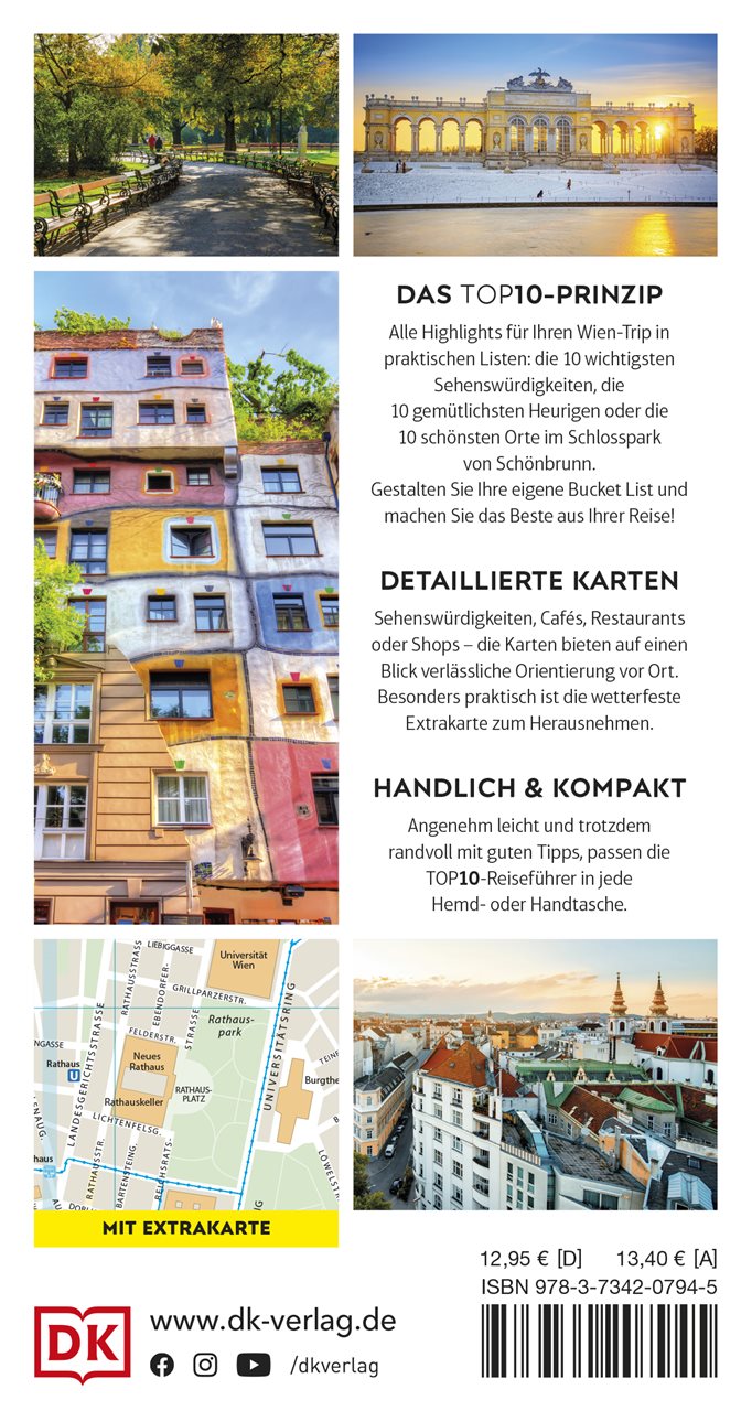 Wien mit Kindern, Shopping in Wien oder Wien abseits der Touristenwege? Die themenorientierten TOP10-Listen bieten eine ideale Grundlage für Ihre ganz persönliche Reiseplanung. Ob Palais und Denkmäler, Theater und Kaffeehäuser oder kostenlose und unbekannte Attraktionen: Im TOP10 Reiseführer Wien finden Sie genau das Richtige für Ihr individuelles Stadtabenteuer - als Alleinreisende*r, als Paar oder als Familie.Reiseführer mit praktischen Reiseinfos und wetterfestem Stadtplan