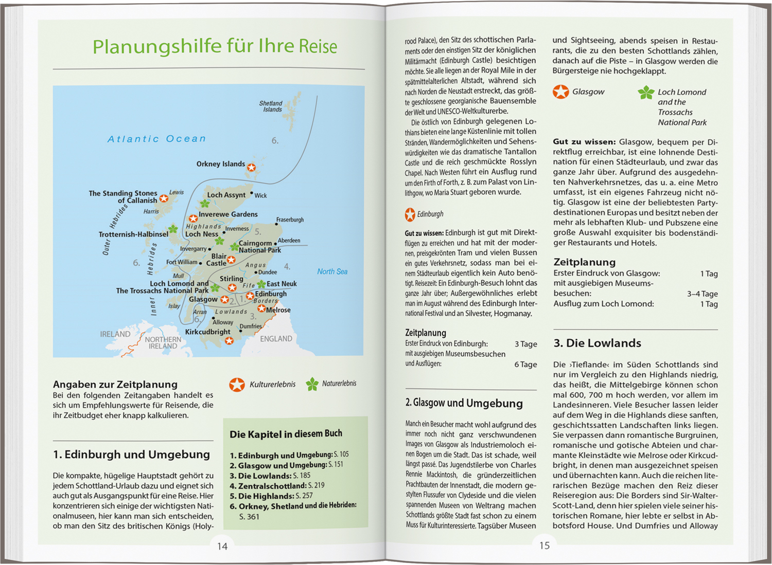 - Praktische Planungshilfe mit Tourenvorschlägen für Rundreisen durch die einzelnen Regionen und das ganze Land