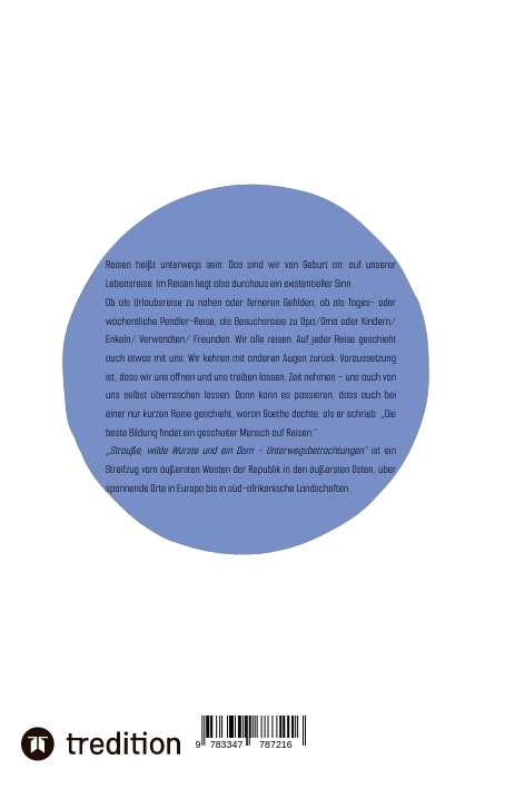 Persönliche Betrachtungen ganz unterschiedlicher Regionen . Und dann: sehr unterschiedliche Reisestile: Radtouren in Deutschland, Frankreich und Italien; Bahnfahren in Deutschland, Roadtrip durch Südafrika.