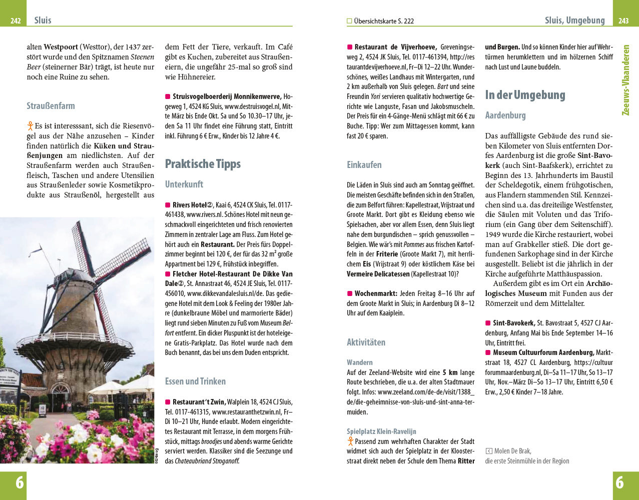 - Übersichtsseiten mit Beschreibungen aller interessanten Orte Zeelands: Von Schouwen-Duiveland über Tholen und Sint-Philipsland, Noord-Beveland, Walcheren und Zuid-Beveland bis nach Zeeuws-Vlaanderen