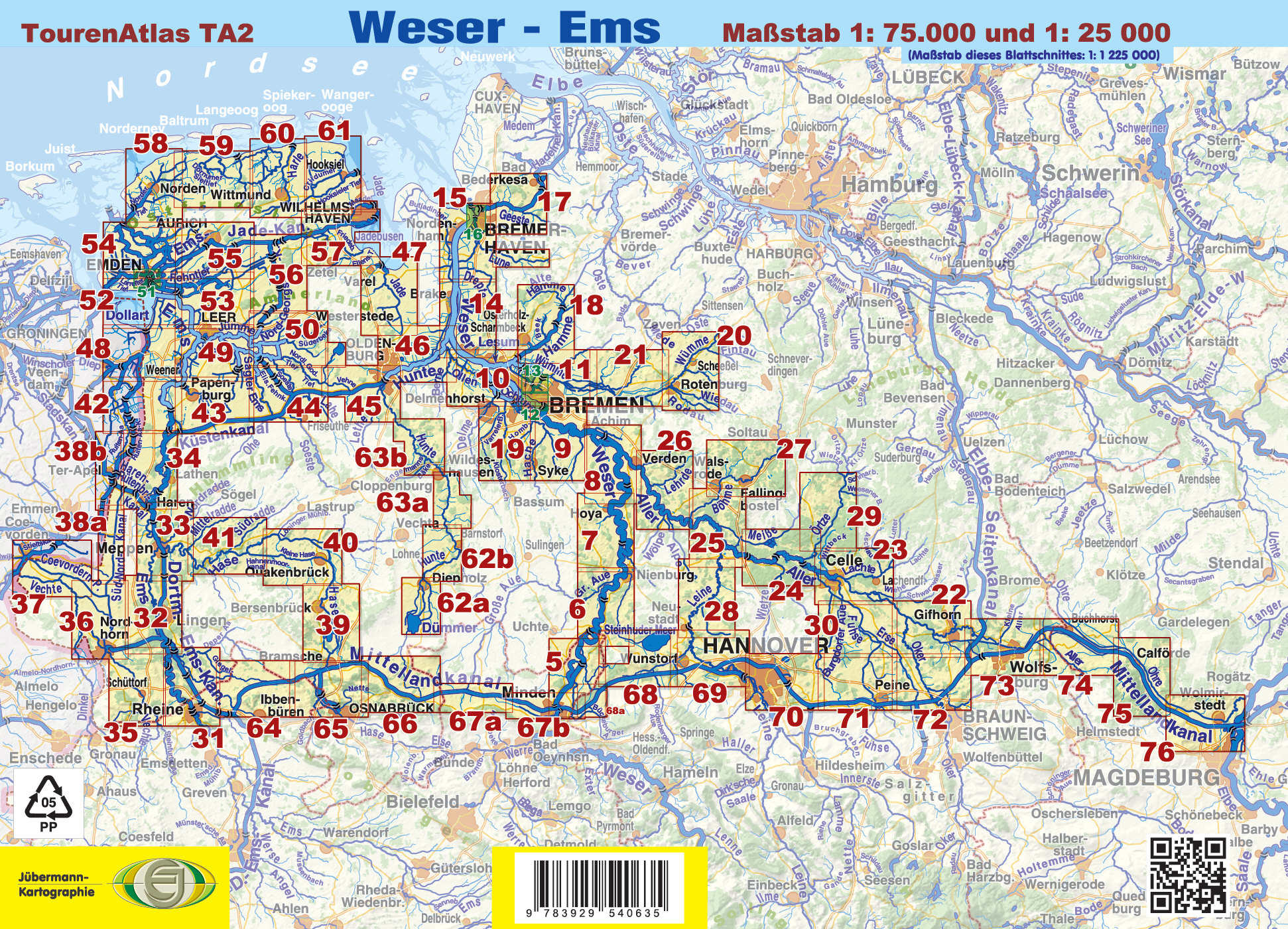 Dieser Atlas bieten alle Informationen, die der Wasserwanderer unterwegs benötigt: Gewässer-km, Anlande- u. Befahrungsverbote, Rast- und Biwakplätze, Liegeplätze, Slip-, Ein- und Ausstiegsmöglichkeiten, Betonnung, Tiefen, Brückenhöhen, Anschriften- und Ausstattungsliste der Vereine und Campingplätze, und eine Kartendarstellung, die nicht hinter´m Deich aufhört, also für Landausflüge oder Radtouren (zum Rückholen des PKW´s) ebenso geeignet ist.