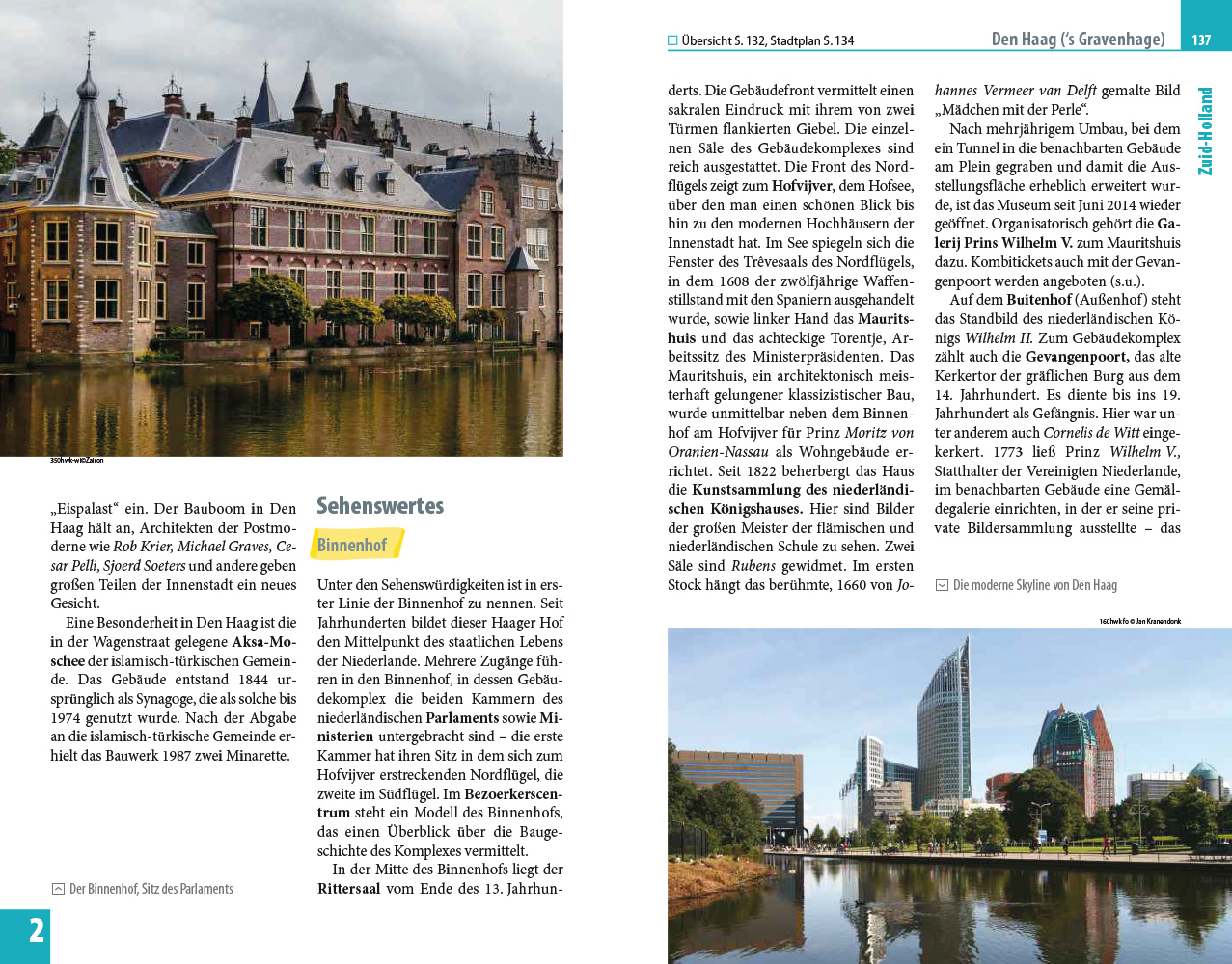 Jedes Kapitel beginnt mit einer Doppelseite, auf der die Inhalte mit einer Übersichtskarte der Region, Highlights und Seitenverweisen vorgestellt werden. Natürlich enthält der Reiseführer die bewährten und praktischen Tipps zu Reisefragen von A-Z. Im erweiterten Vorspann finden sich Übersichtsseiten mit einer Jahresübersicht zu Festen und Veranstaltungen, Routenvorschlägen und persönlichen Top-Tipps des Autorenpaars. Viele spezielle Infos, beispielsweise zur Anreise und zu den vielfältigen Möglichkeiten an Aktivitäten, sind hilfreiche Planungshelfer. Eine kleine Sprachhilfe Niederländisch hilft dabei, mit den Einheimischen in Kontakt zu kommen.