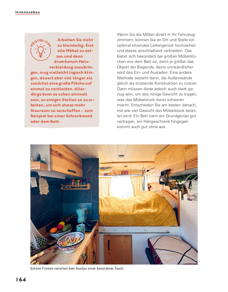Anhand praxisnaher und bebilderter Schritt-für-Schritt Anleitungen für alle Ausbauschritte vom Rohbau bis hin zu Möbeln werden auch vermeintlich schwierige Themen wie Elektrik und Sicherheit in diesem Sachbuch anschaulich und verständlich erläutert.