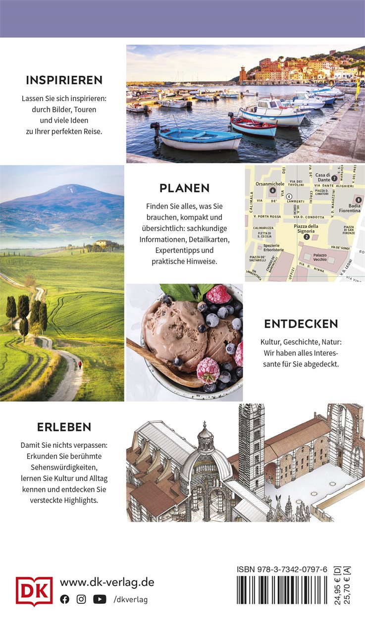 Über die romantische Ponte Vecchio spazieren, Michelangelos David bestaunen oder durch malerische Zypressenlandschaften und Weinberge fahren - Florenz und die Toskana sind einfach magisch. Mit ausführlichem Expertenwissen, den berühmten 3-D-Aufrisszeichnungen, einer wetterfesten Extra-Karte zum Herausnehmen und über 350 stimmungsvollen Fotos erleben Sie die Kultur der Stadt und die Besonderheiten der Region hautnah. Dieser praktische Reiseführer ist der ultimative Begleiter für Ihre Rundreise durch die Toskana und nach Florenz!
