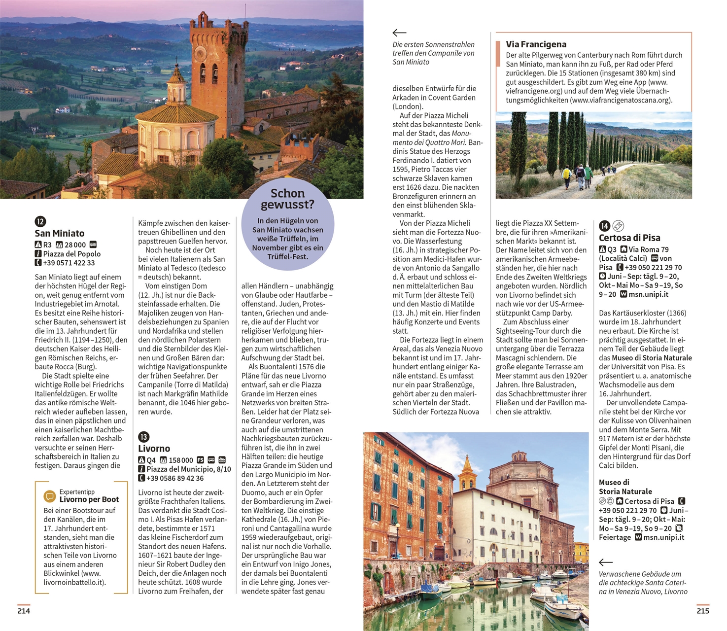 - Ausgewählte Top-Themen: Auf den bildgewaltigen Themenseiten des Florenz & Toskana-Reiseführers stehen charakteristische Besonderheiten im Fokus. Entdecken Sie weltbekannte Kunstwerke in den Museen von Florenz, wunderschöne Landschaften, Villen und Gärten oder Köstlichkeiten aus der toskanischen Küche und den Weinregionen.