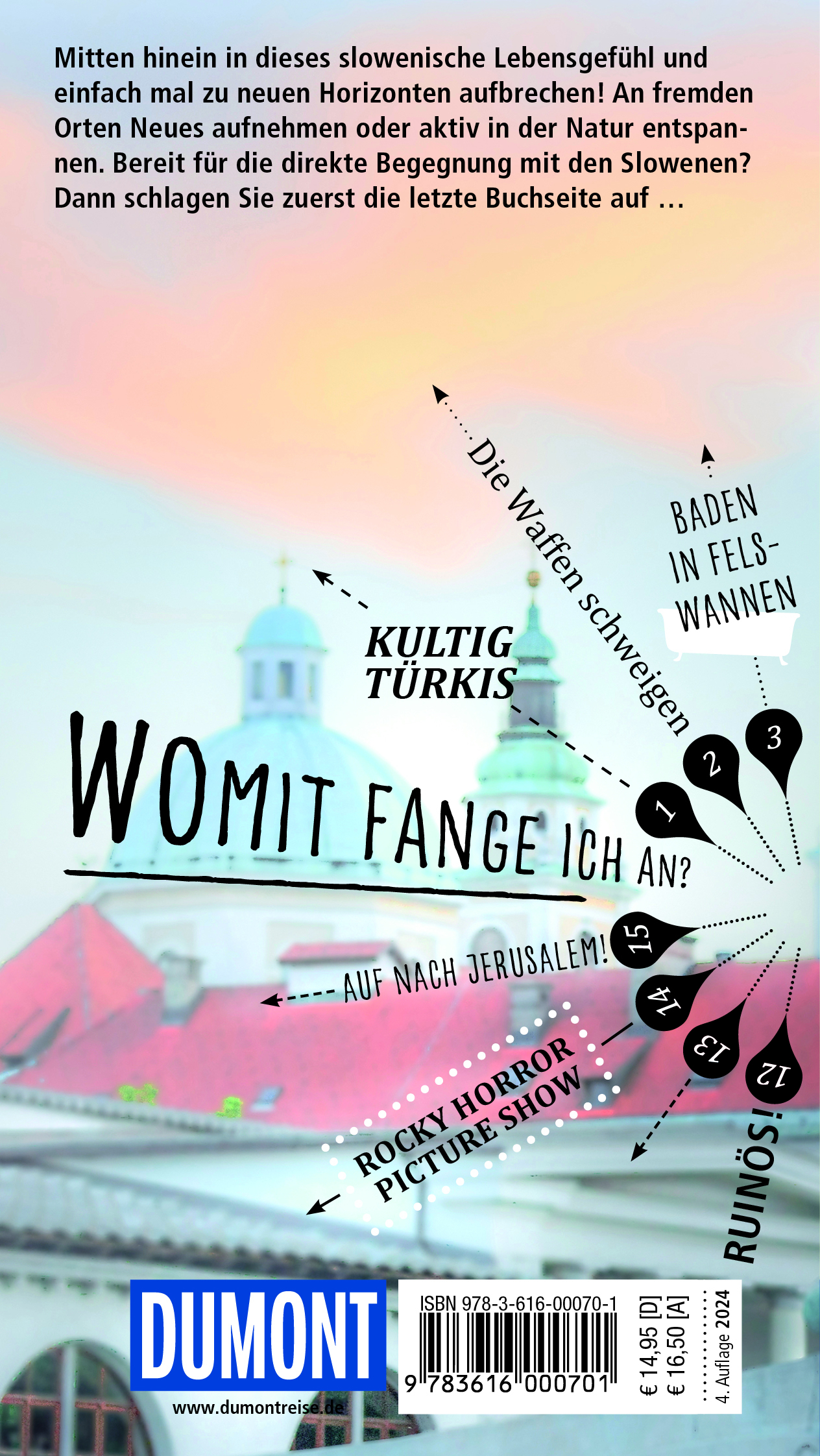 In eigenen Kapiteln erfahren Sie, wo es sich in fremden Betten gut schläft, wo Sie glücklich satt werden, wohin die Slowenen zum Stöbern und Entdecken gehen und wohin es sie zieht, wenn die Nacht beginnt.
