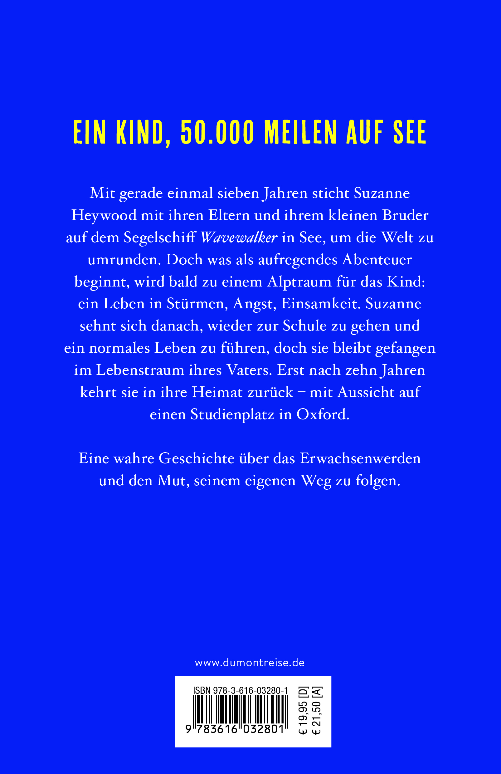 MIT GERADE EINMAL SIEBEN JAHREN sticht Suzanne Heywood mit ihren Eltern und ihrem kleinen Bruder auf dem Segelschiff Wavewalker in See, um die Welt zu umrunden. Doch was als aufregendes Abenteuer beginnt, wird bald zu einem Alptraum für das Kind: ein Leben in Stürmen, Angst, Einsamkeit. Suzanne sehnt sich danach, wieder zur Schule zu gehen und ein normales Leben zu führen, doch sie bleibt gefangen im Lebenstraum ihres Vaters. Erst nach zehn Jahren kehrt sie in ihre Heimat zurück - mit Aussicht auf ein Oxfordstipendium. Eine wahre Geschichte über das Erwachsenwerden und die Sehnsucht nach Heimat, vom bitteren Überlebenskampf eines Kindes, dem jede Sicherheit versagt wurde. Und bisweilen sogar das Trinkwasser.