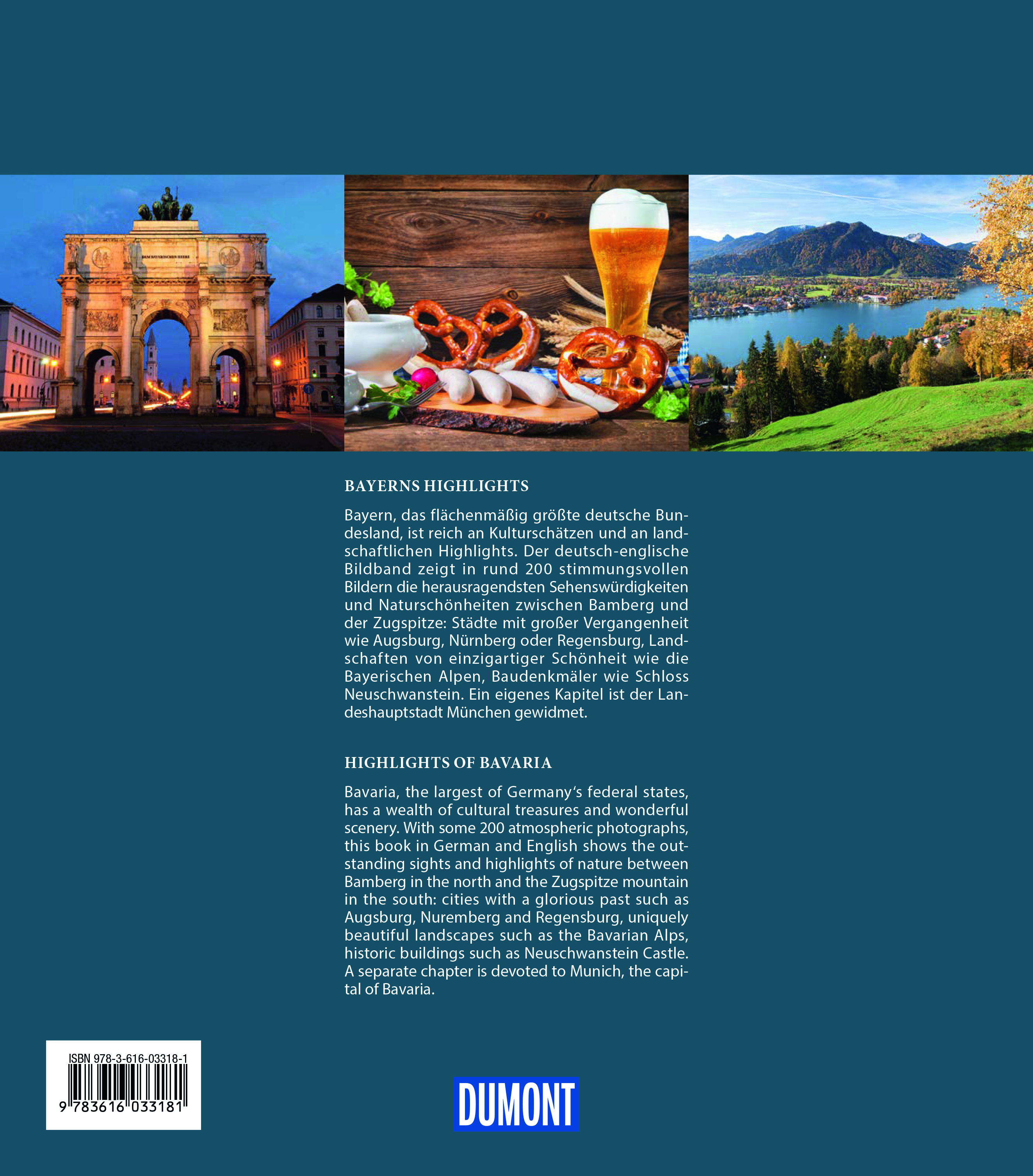 BAYERN IST MIT WEITEM ABSTAND Deutschlands beliebtestes Bundesland für Urlauber, egal ob sie aus Deutschland oder aus dem Ausland kommen. Der handliche Bildband mit kurzen, deutsch-englischen Texten zeigt in rund 160 stimmungsvollen Bildern die herausragendsten Sehenswürdigkeiten und Naturschönheiten zwischen Bamberg und Zugspitze: Städte mit großer Vergangenheit wie Augsburg, Nürnberg oder Regensburg, Landschaften von einzigartiger Schönheit wie die oberbayerischen Seen oder die Bayerischen Alpen und Baudenkmäler wie die Wieskirche oder Schloss Neuschwanstein. Ein eigenes Kapitel ist der Landeshauptstadt München gewidmet. Der Bayern-Besuch bleibt mit diesem Band in allerbester Erinnerung!