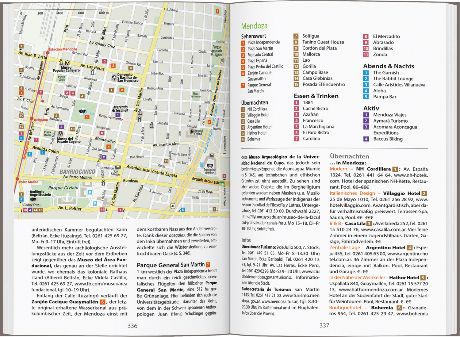 - 37 Karten und Pläne plus eine separate Argentinien-Reisekarte im Maßstab 1:2.300.000.
