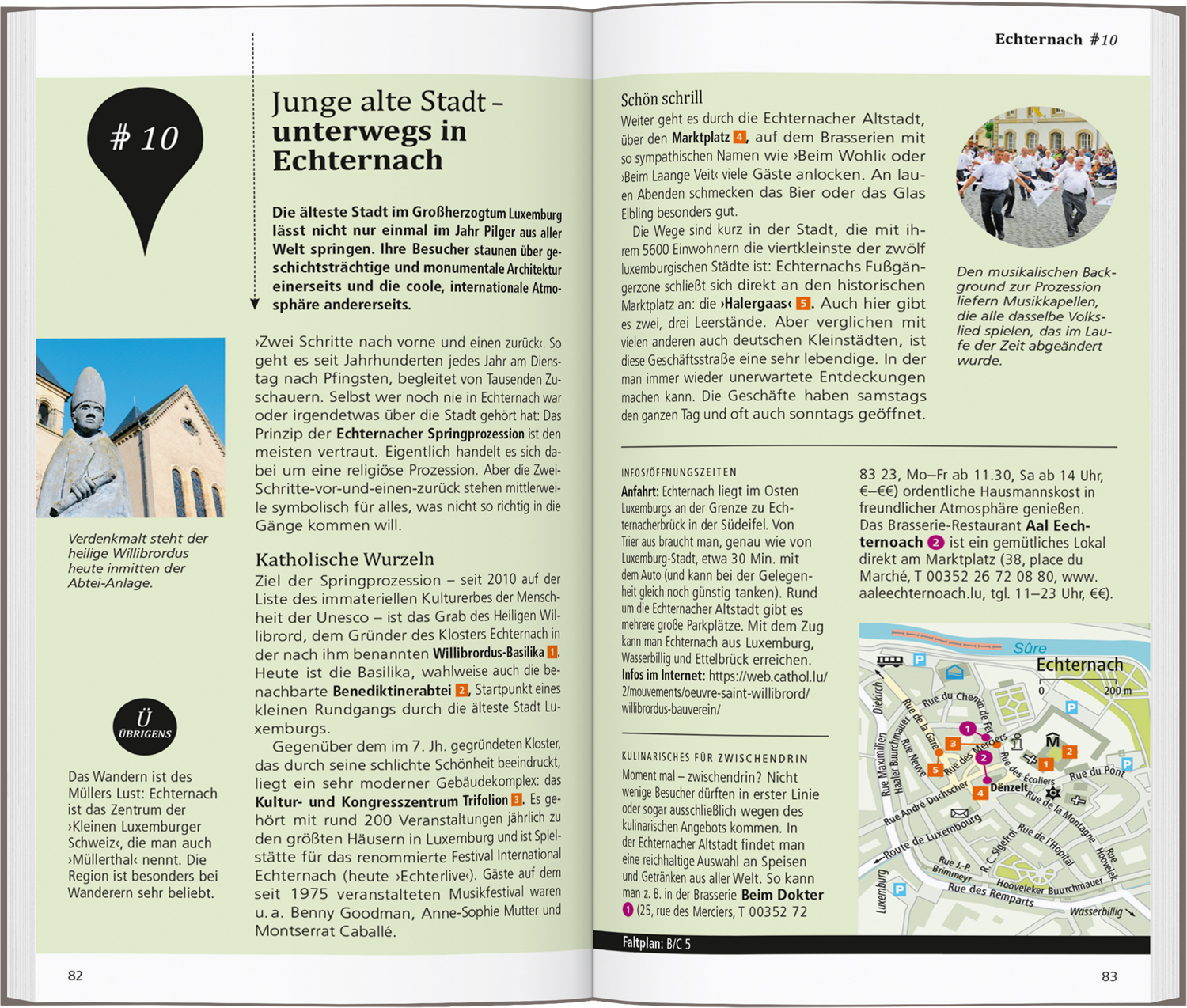 Dank vieler Tipps und Adressen erfahren Sie, wo es sich in fremden Betten gut schläft, wo Sie glücklich satt werden, wohin die Moselaner zum Stöbern und Entdecken gehen und wohin es sie zieht, wenn die Nacht beginnt. Mit den Übersichtskarten, genauen Stadtplänen und dem separaten großen Faltplan können Sie nach Lust und Laune das Moseltal erkunden.