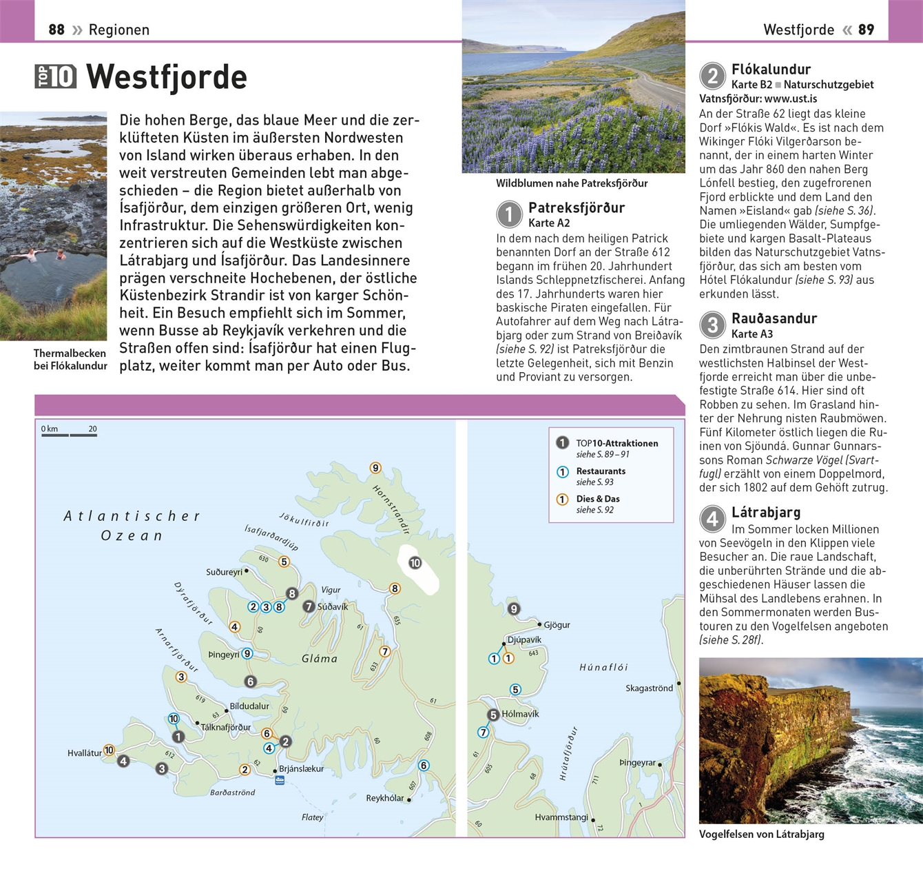 Besuchen Sie die besten Cafés in Reykjavík, unternehmen Sie eine Autotour durch das Hochland und entdecken Sie den geschichtsträchtigen Norden der Insel - im TOP10 Island-Reiseführer werden die einzelnen Regionen Islands übersichtlich und ausführlich porträtiert. Stimmungsvolle Fotos und detaillierte Regionalkarten zeigen berühmte Sehenswürdigkeiten, charmante Städte und Dörfer sowie Restaurant-, Shopping- oder Tourenvorschläge auf einen Blick.