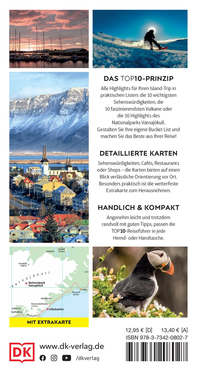 - Klar strukturiert: Im bewährten TOP10-Prinzip werden die beliebtesten Sightseeing-Orte und Unternehmungen auf Island kurz und knackig aufbereitet.