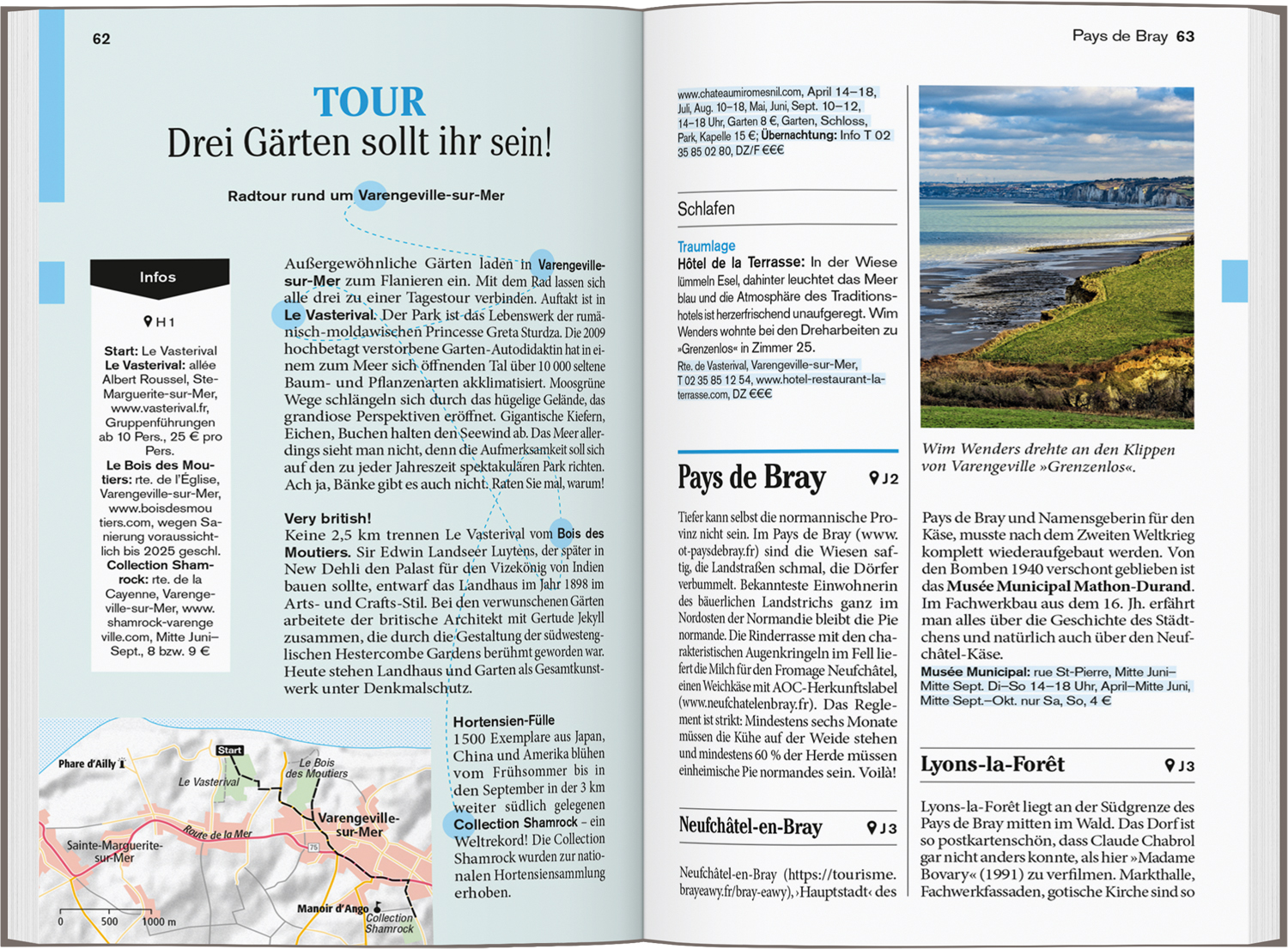 - Die Karten: 8 Citypläne, 17 Tourenkarten, Übersichtskarte mit den Highlights der Normandie, Schnellüberblick zu jeder Region plus eine separate Reisekarte