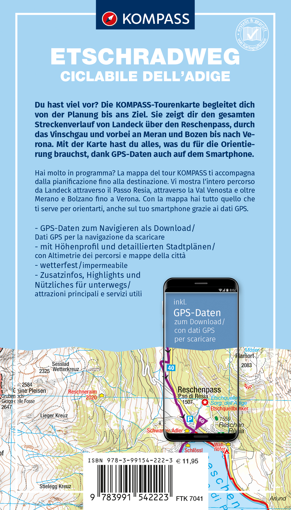| Schlagworte | Etsch Fahrradkarte • Etschradweg • Etschradweg Fahrradkarte • Etschradweg Fahrrad-Tourenkarte • Etschradweg Karte • Fahrradkarte Etschradweg • Fahrradkarte Südtirol • Fahrrad-Tourenkarte Etschradweg • FTK 7041 • Karte Etschradweg • Radwanderkarte • Via Claudia Augusta |