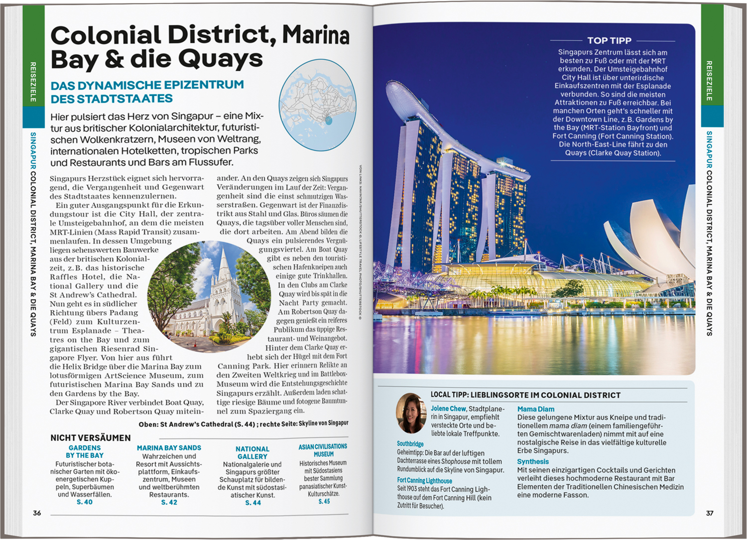 | Schlagworte | Asian Civilisations Museum • Botanischer Garten • Gardens by the Bay • Kampong Glam • Little India & • Little India & • Naturschutzgebiet Bukit Timah • Orchard Road • Pulau Ubin • S.E.A. Aquarium • Sentosa Island • zoo |