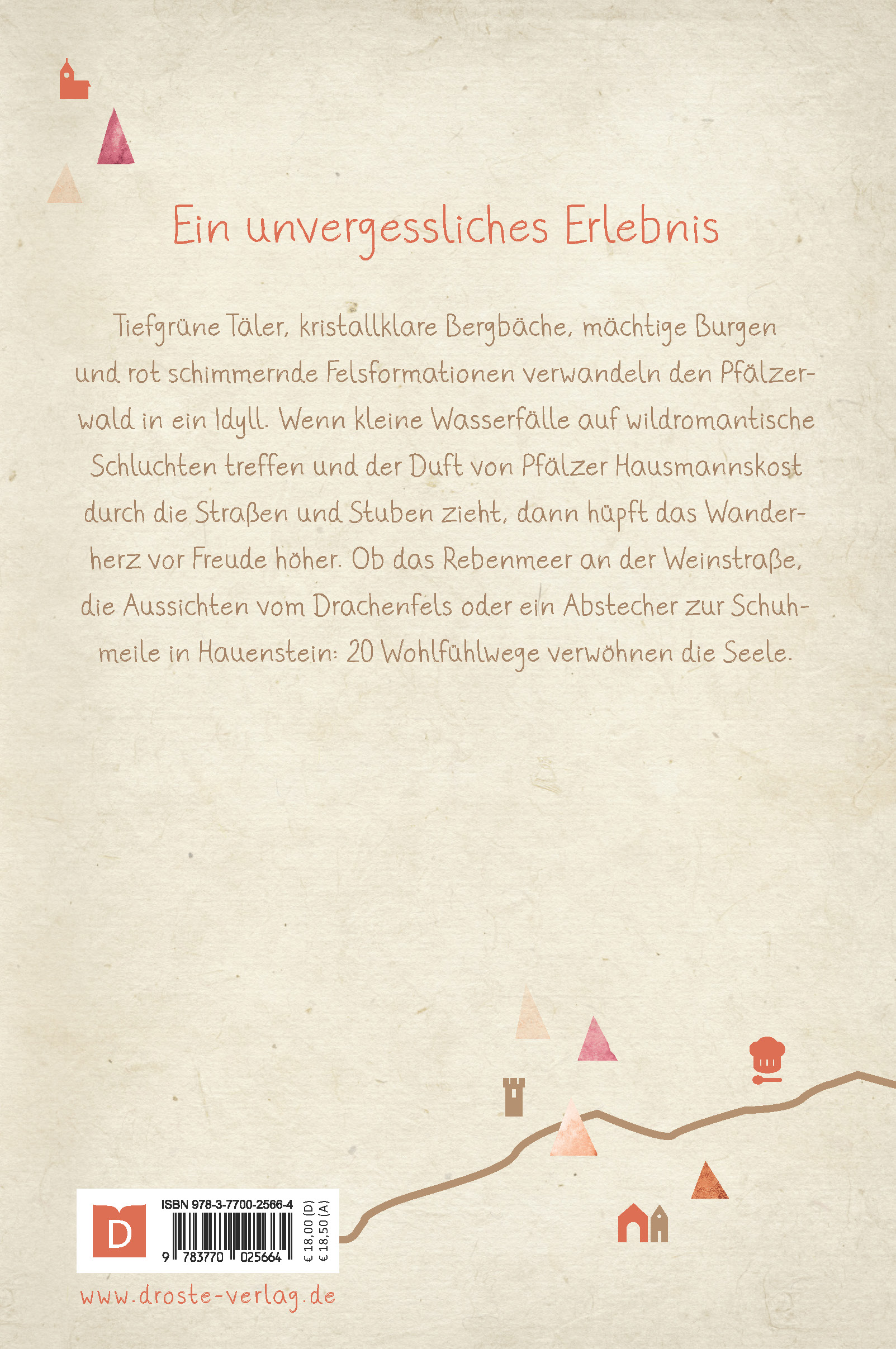 Tiefgrüne Täler, kristallklare Bergbäche, mächtige Burgen und rot schimmernde Felsformationen verwandeln den Pfälzerwald in ein Idyll. Wenn kleine Wasserfälle auf wildromantische Schluchten treffen und der Duft von Pfälzer Hausmannskost durch die Straßen und Stuben zieht, dann hüpft das Wanderherz vor Freude höher. Ob das Rebenmeer an der Weinstraße, die Aussichten vom Drachenfels oder ein Abstecher zur Schuhmeile in Hauenstein: 20 Wohlfühlwege verwöhnen die Seele.