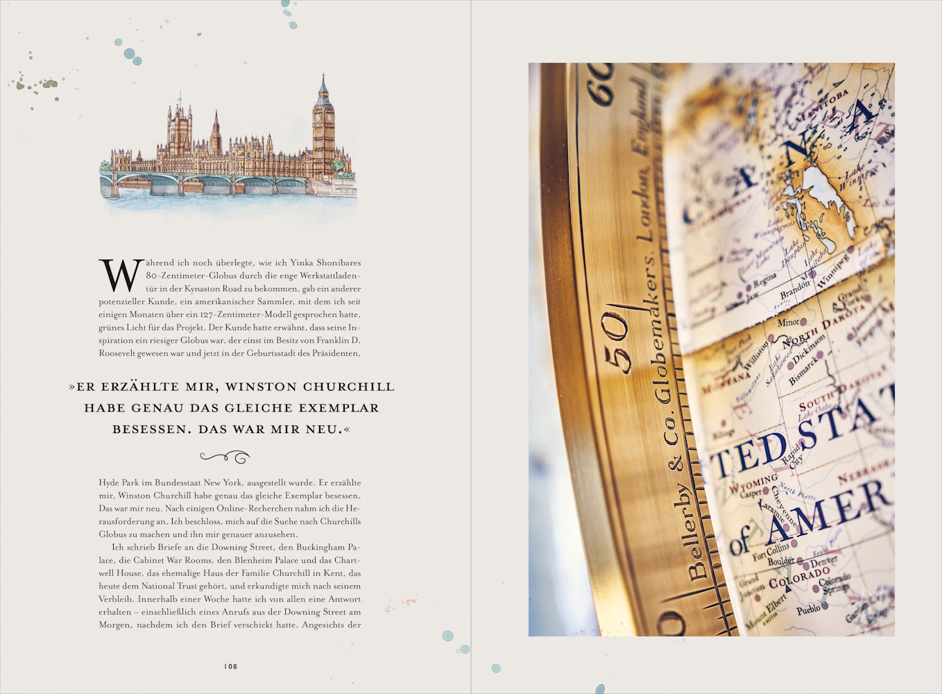 Kommen Sie in dieser faszinierenden Reportage mit auf eine Reise durch die Werkstatt des Globenmachers und lernen Sie die verschiedenen Handgriffe eines fast ausgestorbenen Kunsthandwerks kennen. In exklusiven Fotografien blicken Sie den Handwerkern, Künstlern und Kartographen bei ihrer täglichen Arbeit hautnah über die Schulter. Neben den einzelnen Arbeitsschritten, die für die Herstellung der maßgefertigten Globen notwendig sind, wird anhand von spannende Anekdoten und historischen Illustrationen auch die Geschichte der Kartographie und der Globenherstellung, aber auch die Bedeutung von Globen im Laufe der Zeit anschaulich beleuchtet. Zudem werden historische und sogar berühmte Globen vorgestellt.