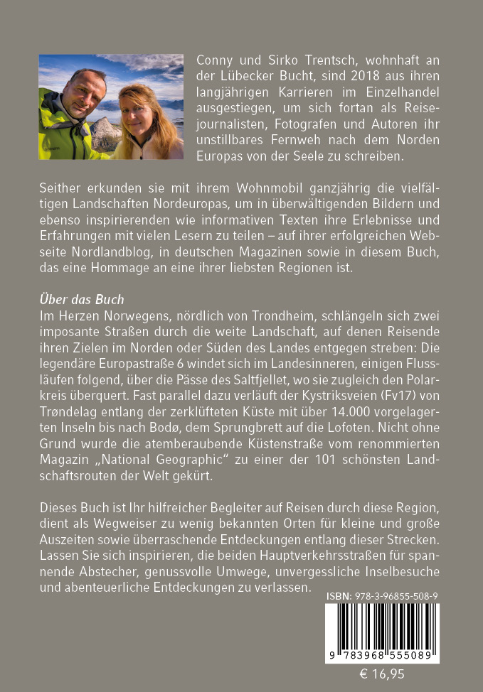 Conny und Sirko Trentsch, wohnhaft an der Lübecker Bucht, sind 2018 aus ihren langjährigen Karrieren im Einzelhandel ausgestiegen, um sich fortan als Reisejournalisten, Fotografen und Autoren ihr unstillbares Fernweh nach dem Norden Europas von der Seele zu schreiben.Seither erkunden sie mit ihrem Wohnmobil ganzjährig die vielfältigen Landschaften Nordeuropas, um in überwältigenden Bildern und ebenso inspirierenden wie informativen Texten ihre Erlebnisse und Erfahrungen mit vielen Lesern zu teilen - auf ihrer erfolgreichen Webseite Nordlandblog, in deutschen Magazinen sowie in diesem Buch, das eine Hommage an eine ihrer liebsten Regionen ist.