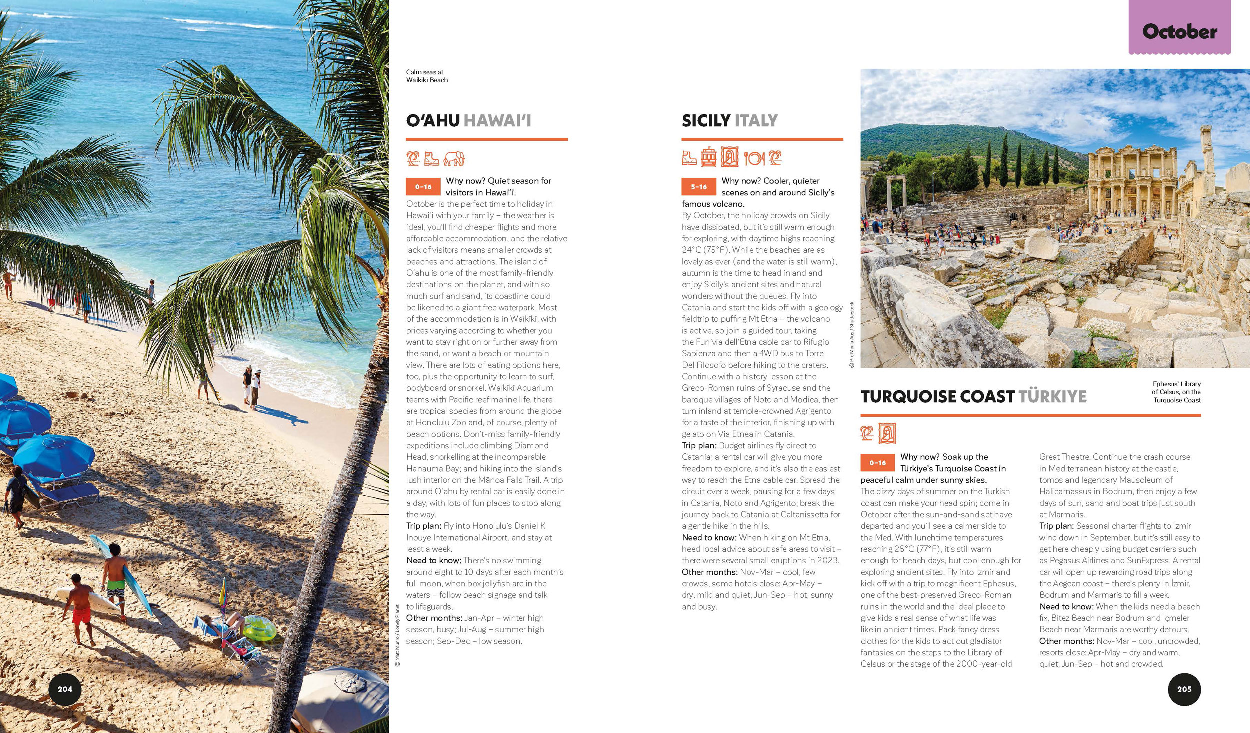 Written by Lonely Planet’s team of travel expert parents who provide trip planning tips; need-to-knows; how-to insights; and suggestions of other times throughout the year to visit the destinations